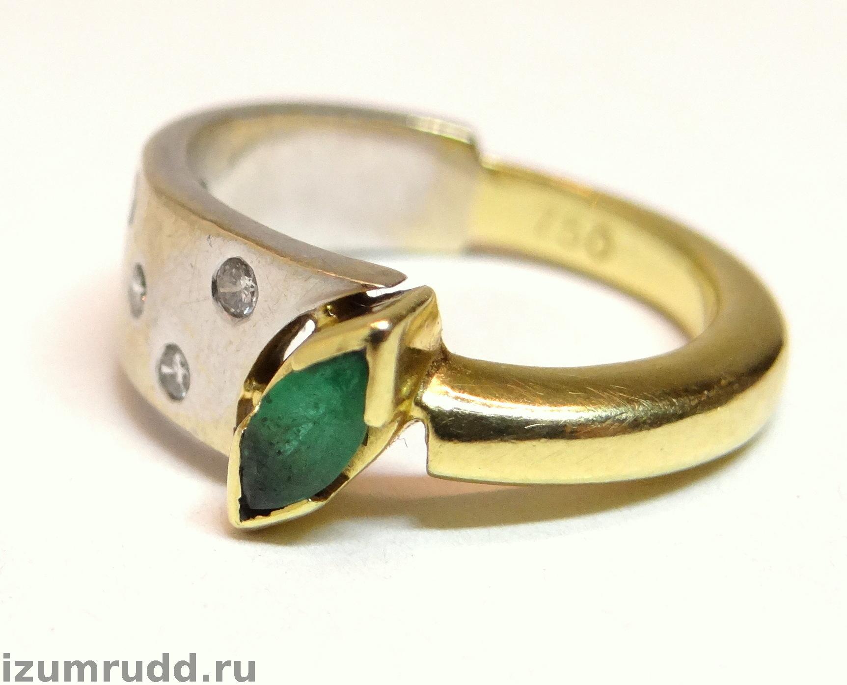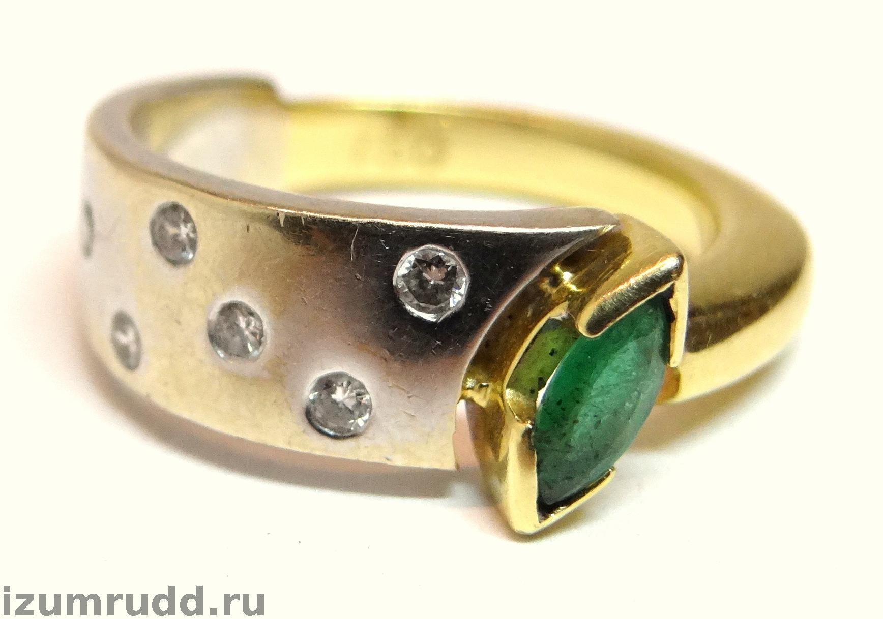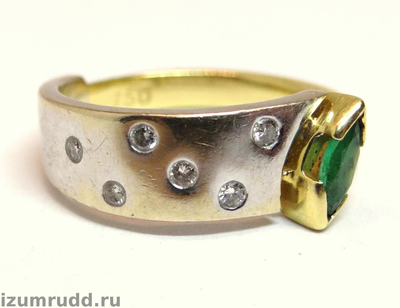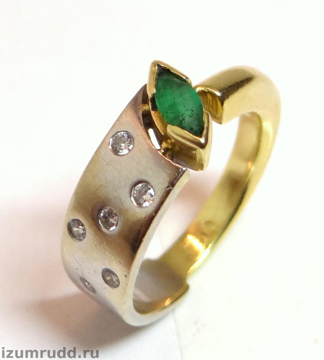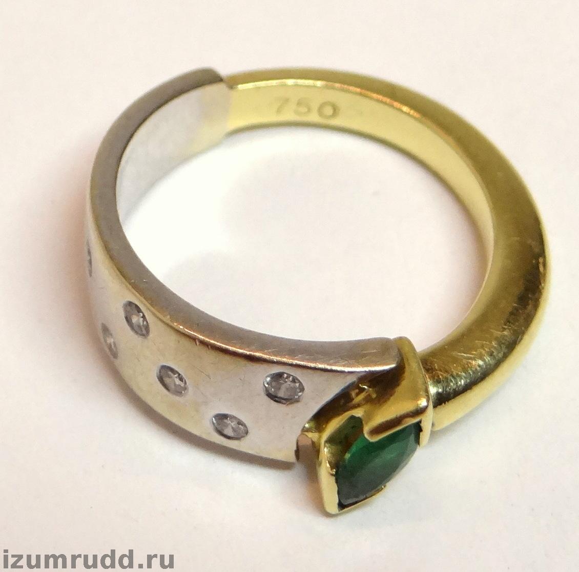 Золотое кольцо 750 пробы с изумрудом и бриллиантами.