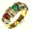 вставки: 1 рубин - 0.3 ct., 1 сапфир - 0.3 ct., 1 изумруд - 0.3 ct., 22 бриллианта - 0.22 ct.
