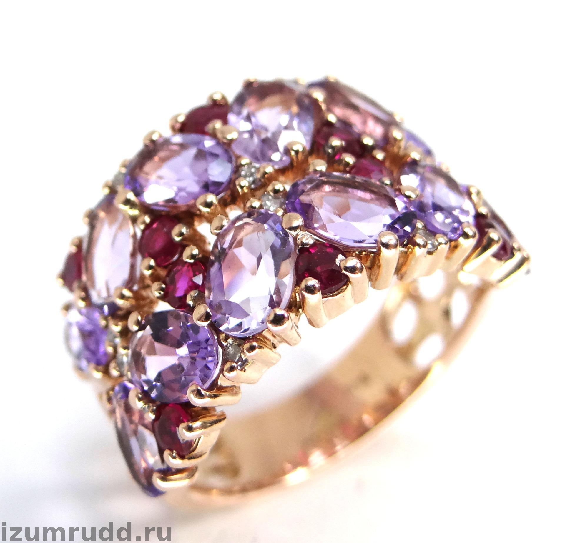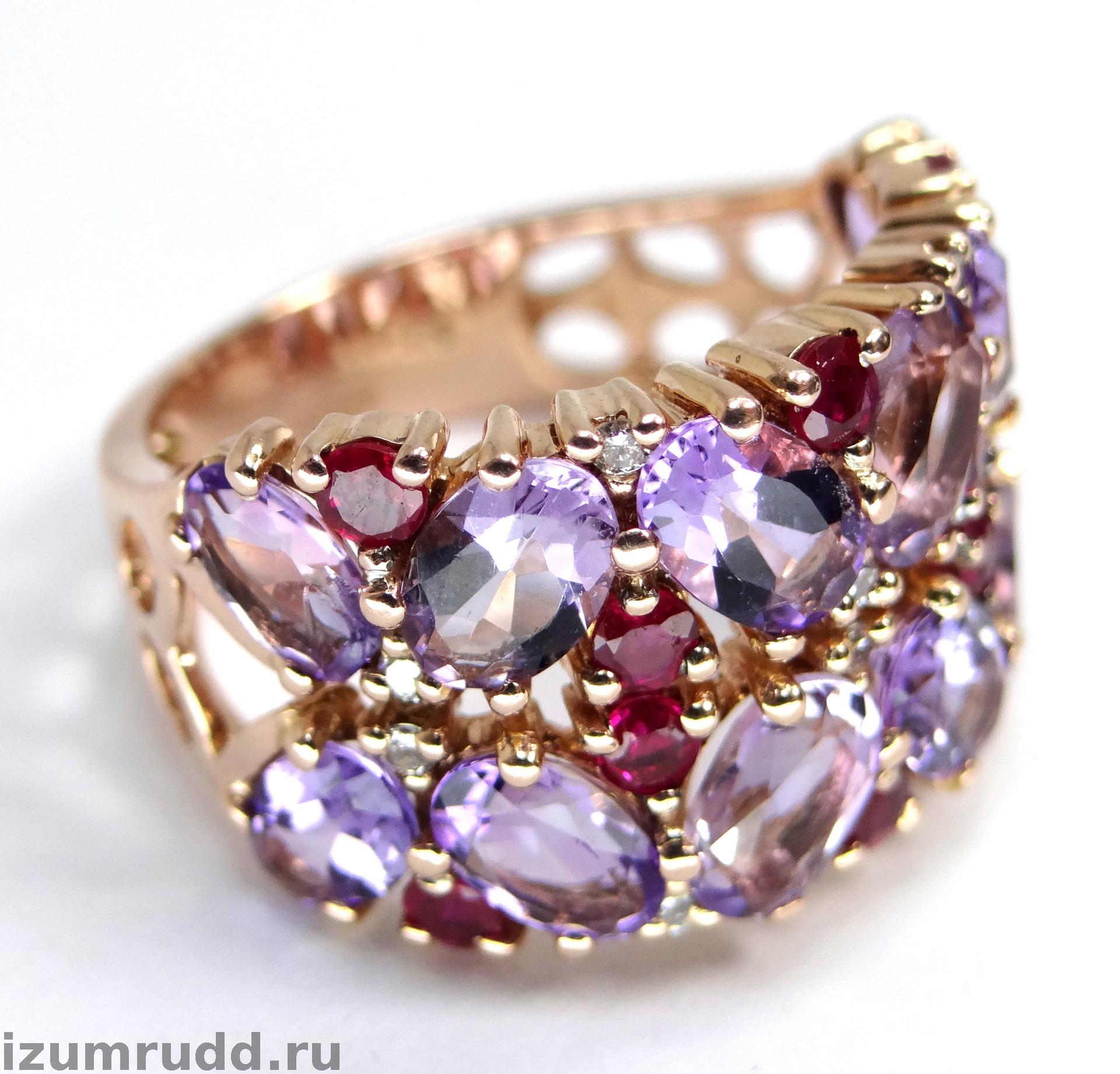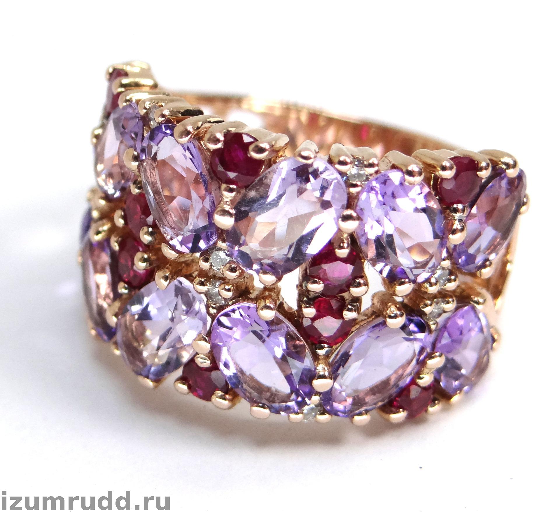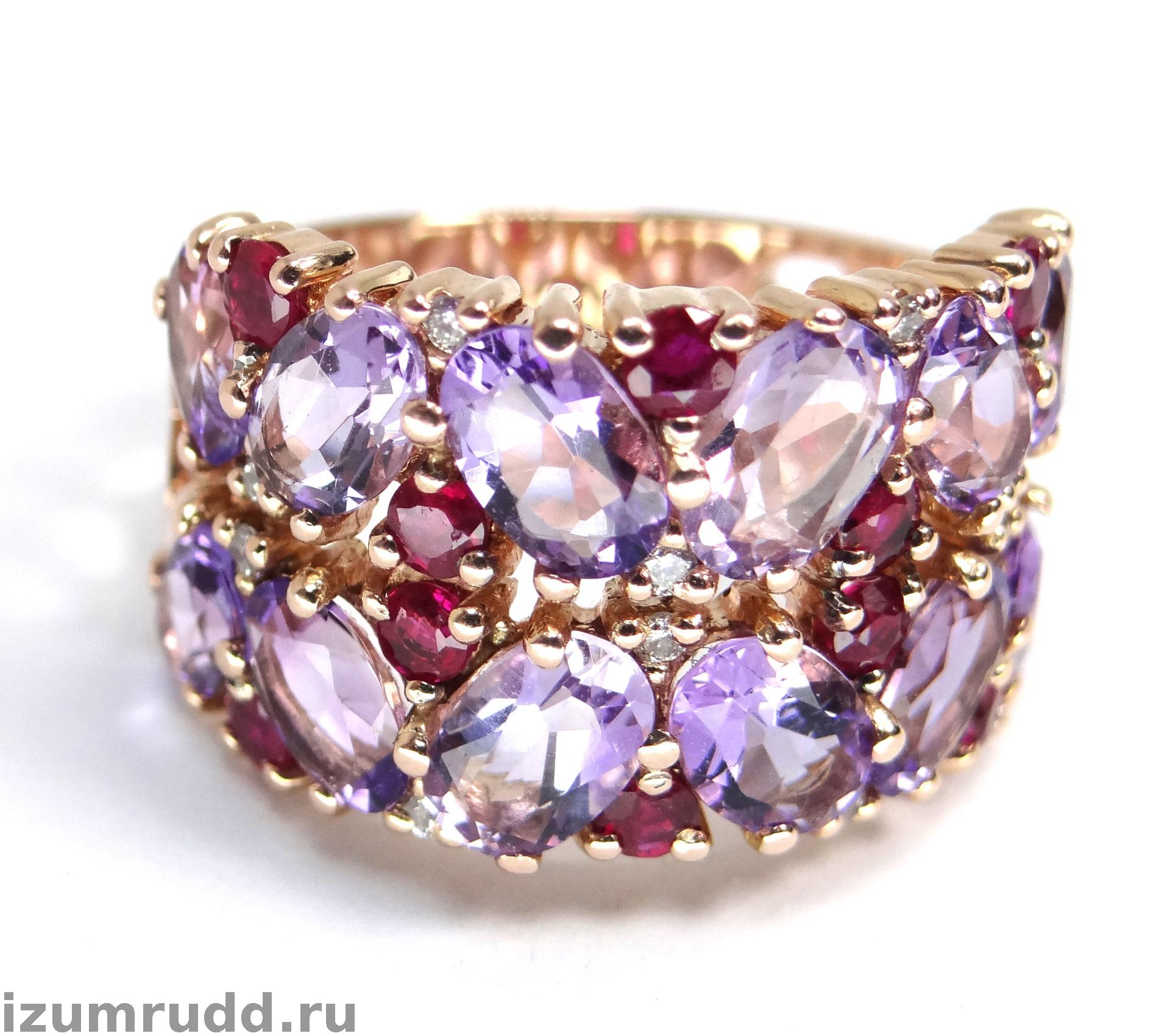 Золотое кольцо с аметистами, рубинами и бриллиантами