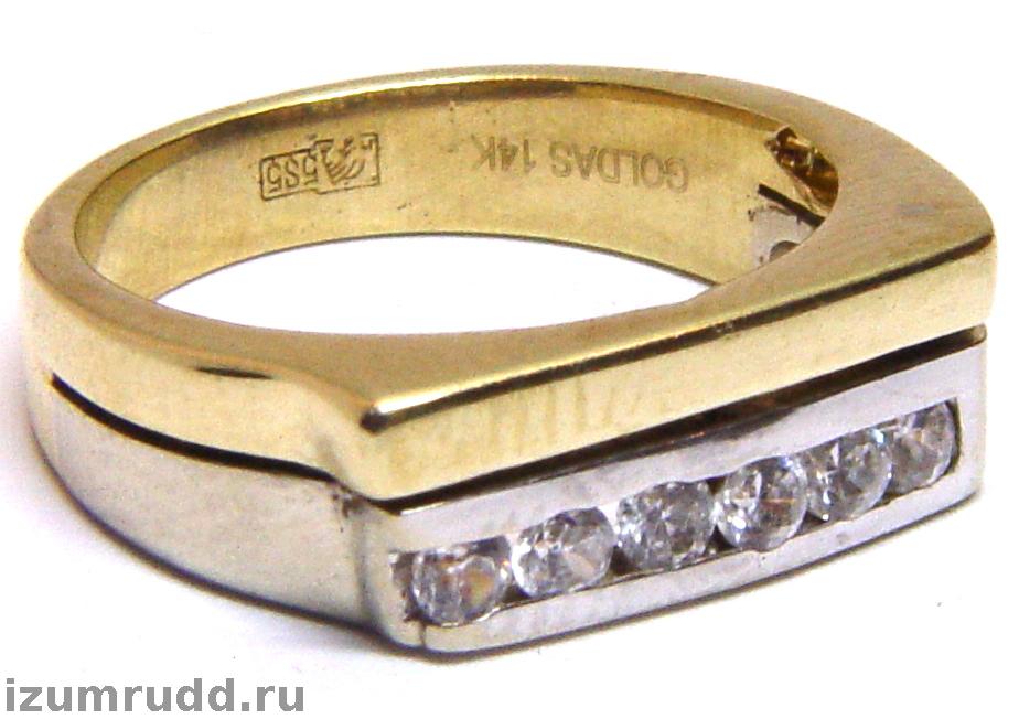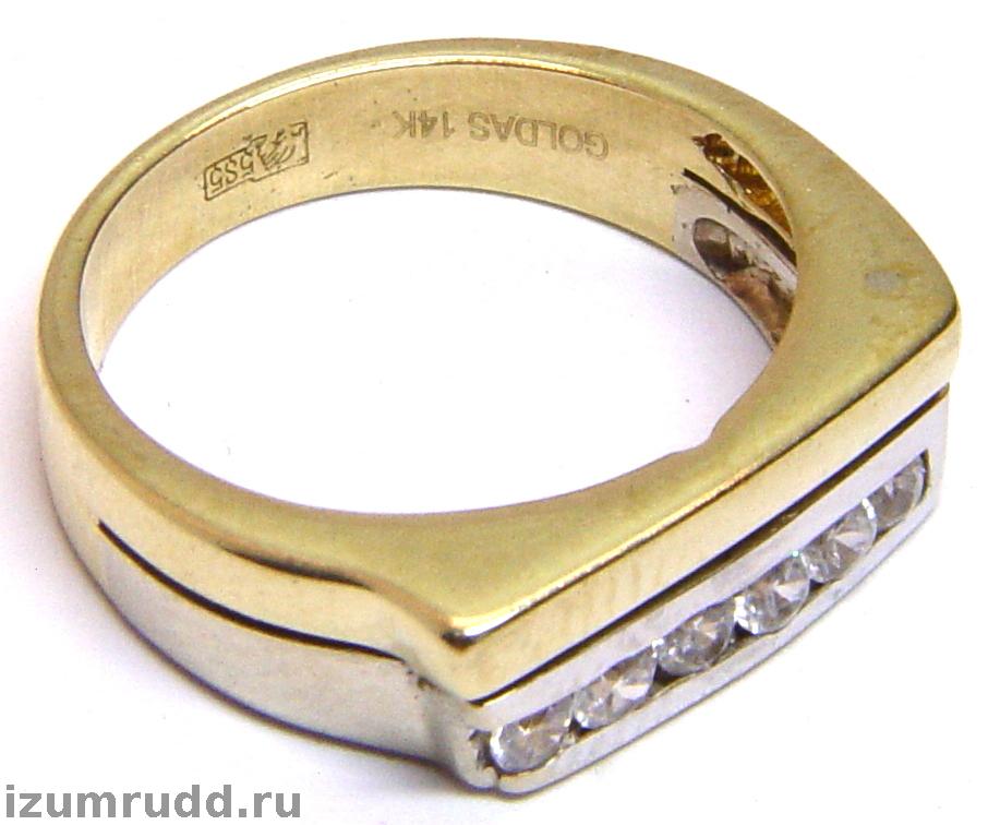 Кольцо выполнено из желтого и белого золота 585 пробы.