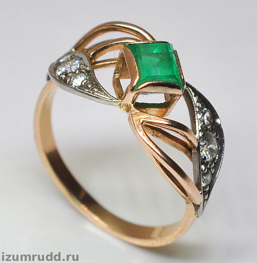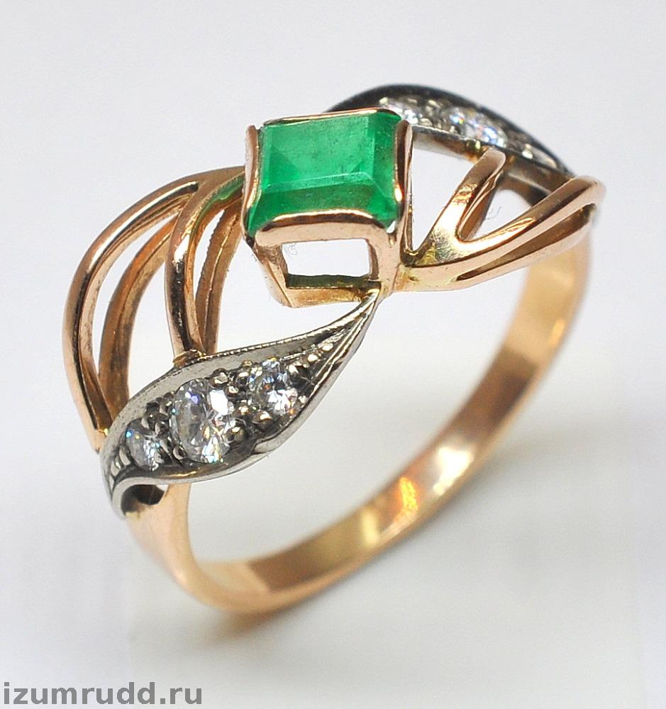 Золотое кольцо с изумрудом бриллиантами 583 пробы СССР