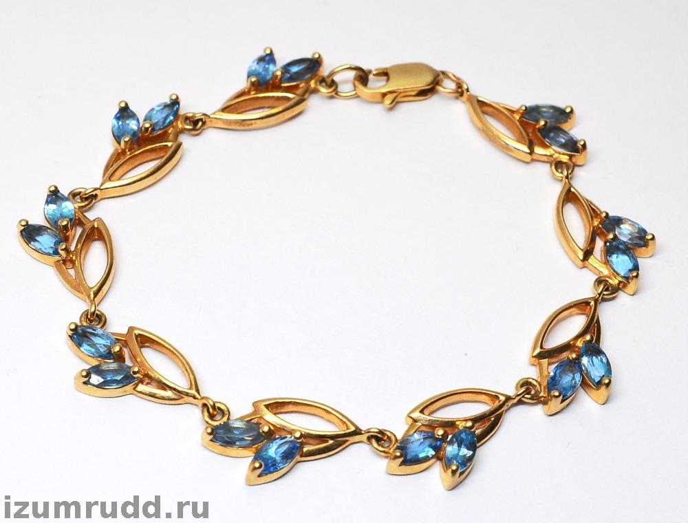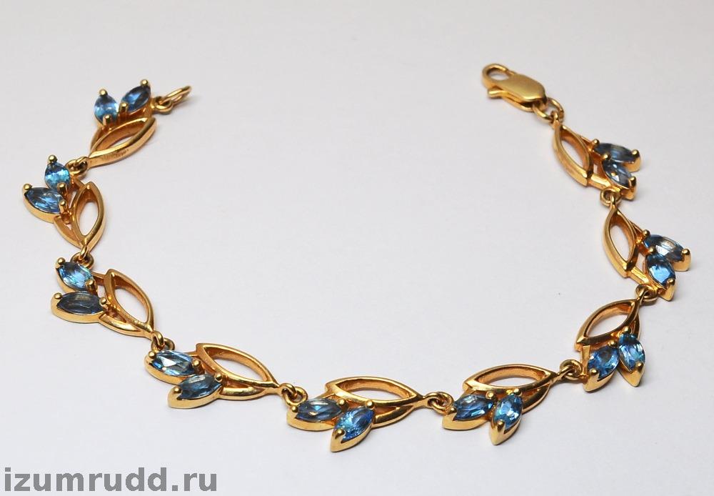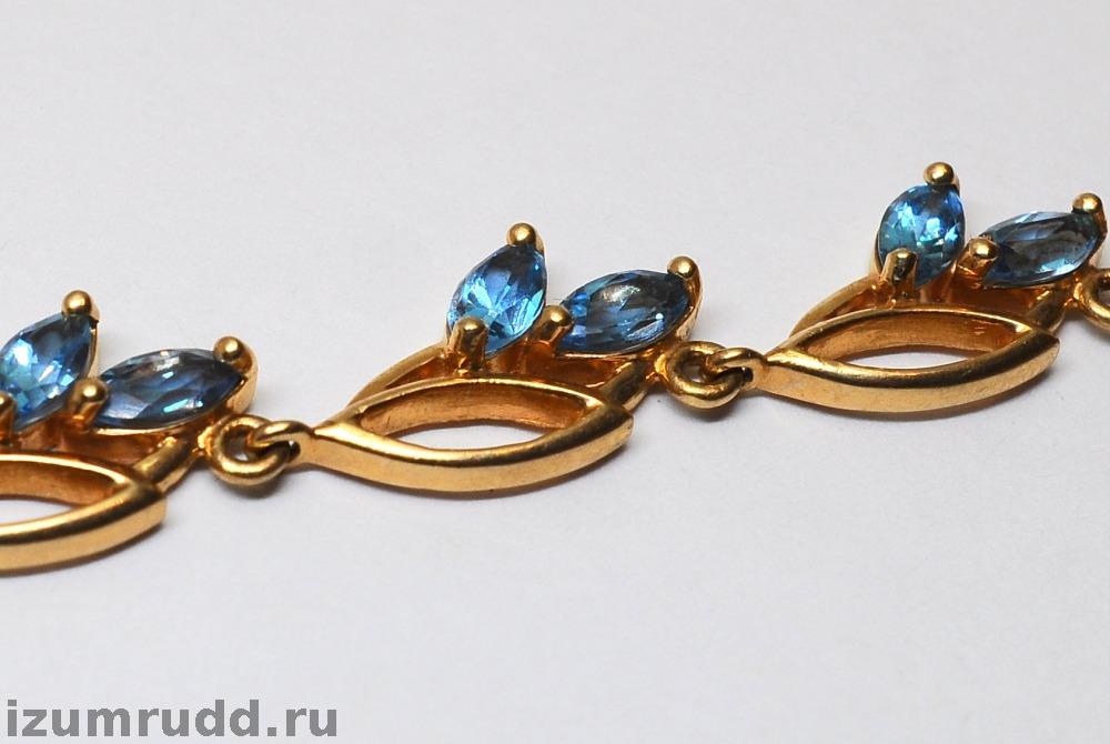 Золотой браслет с голубыми камушками 585 пробы