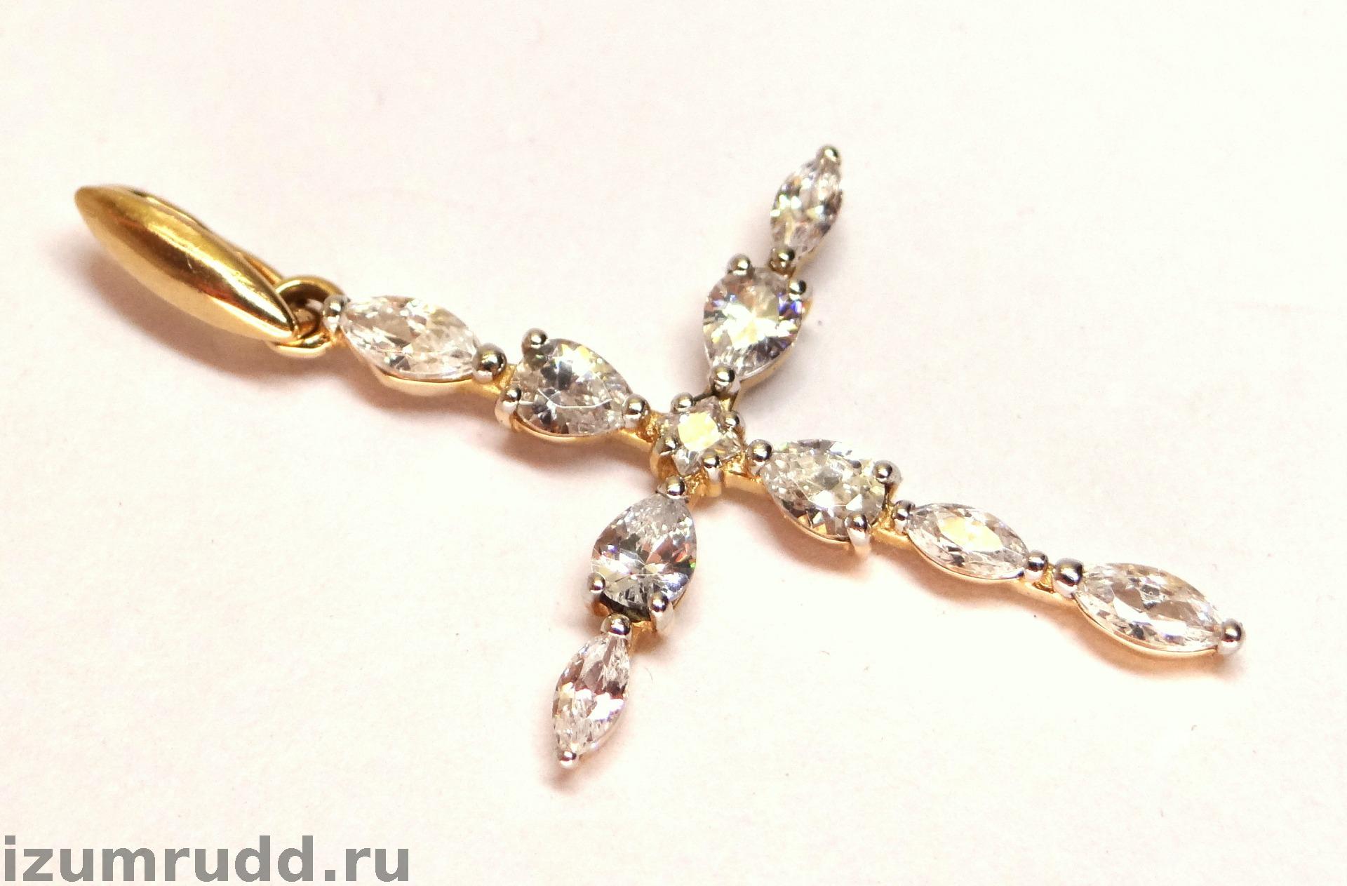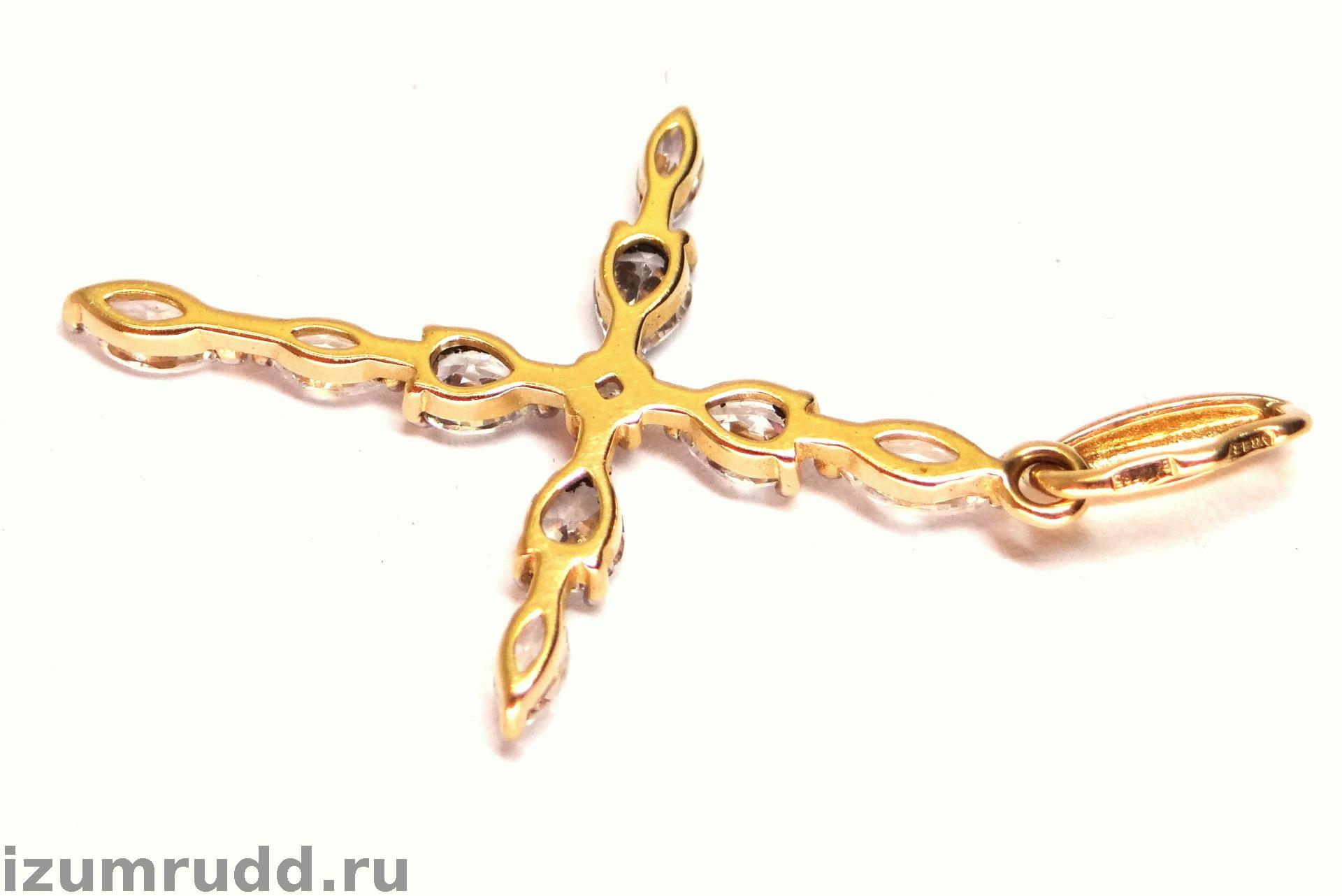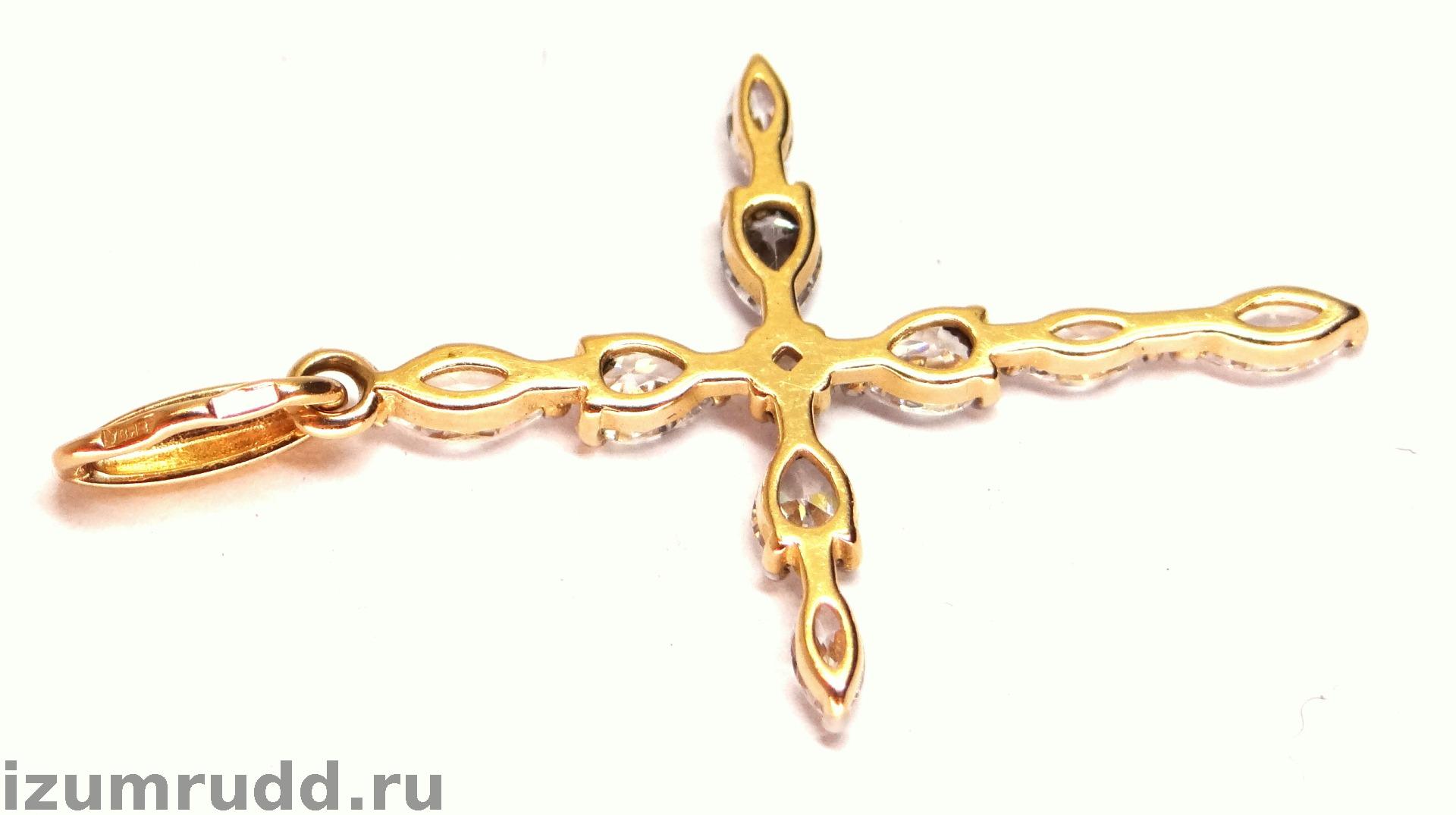 Золотой крест 585 пробы с фианитами