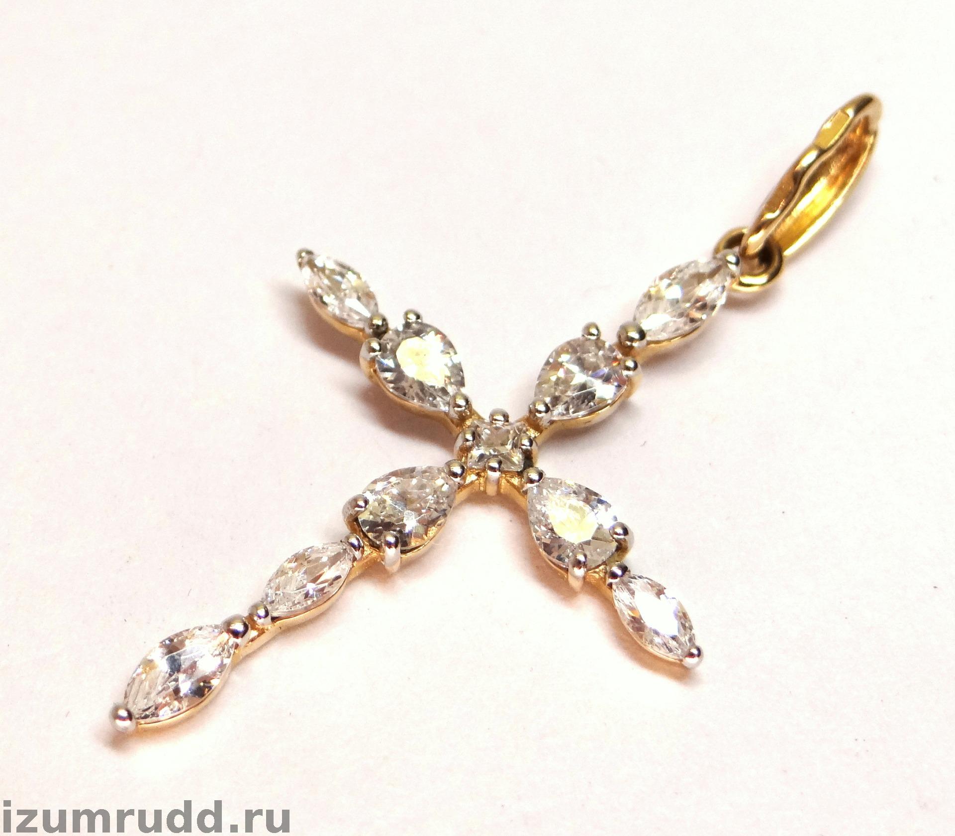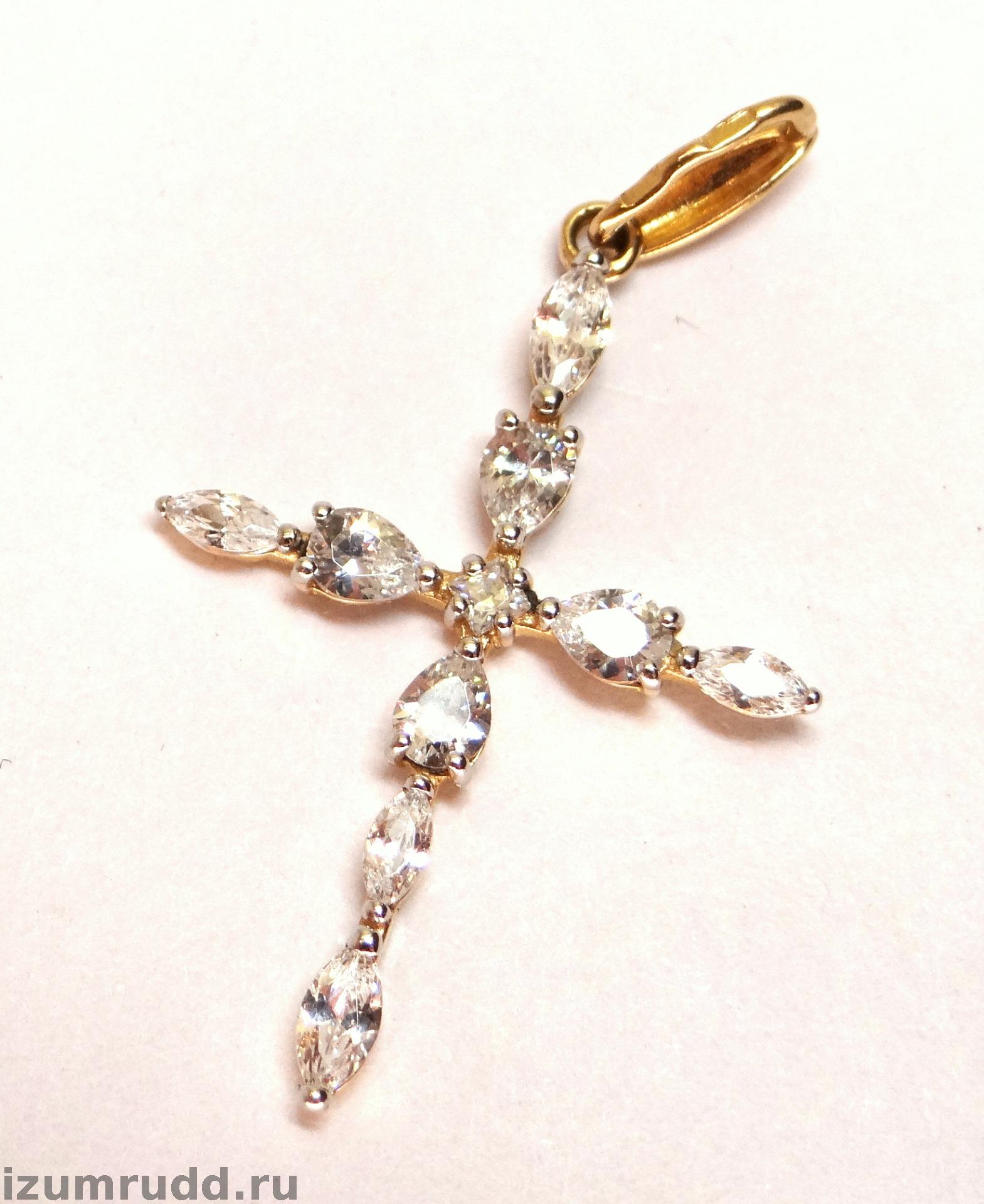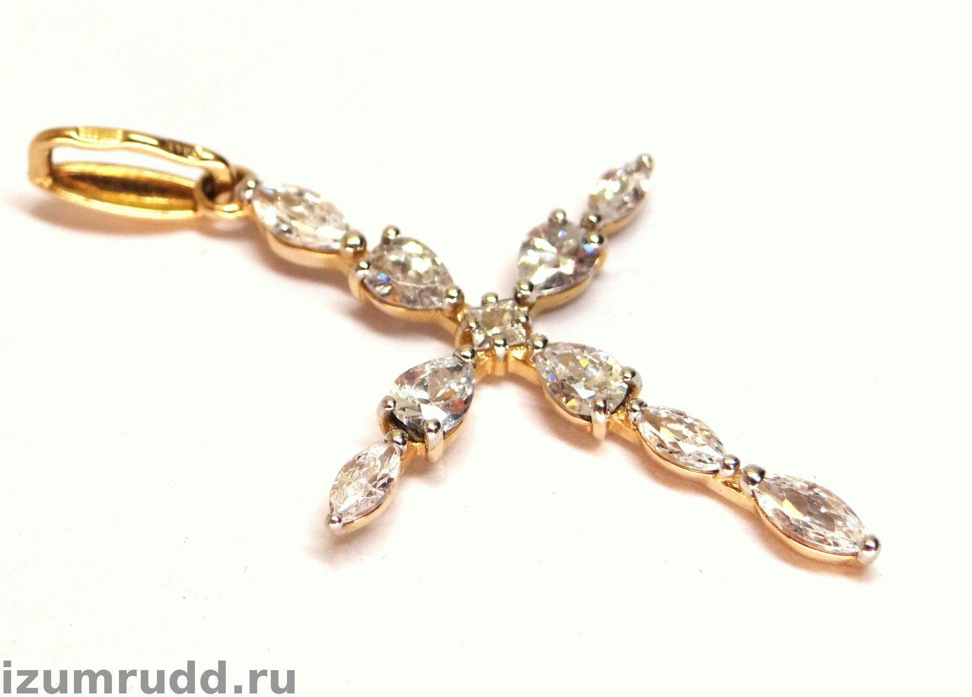 Золотой крест 585 пробы с фианитами