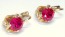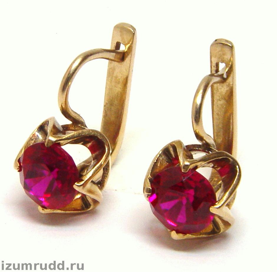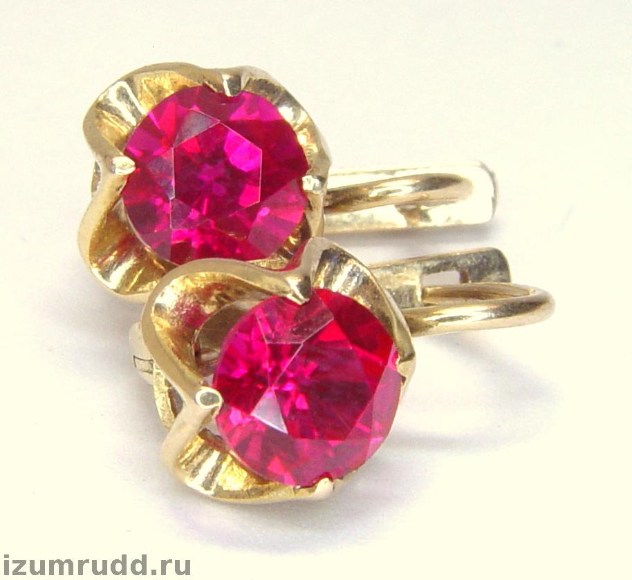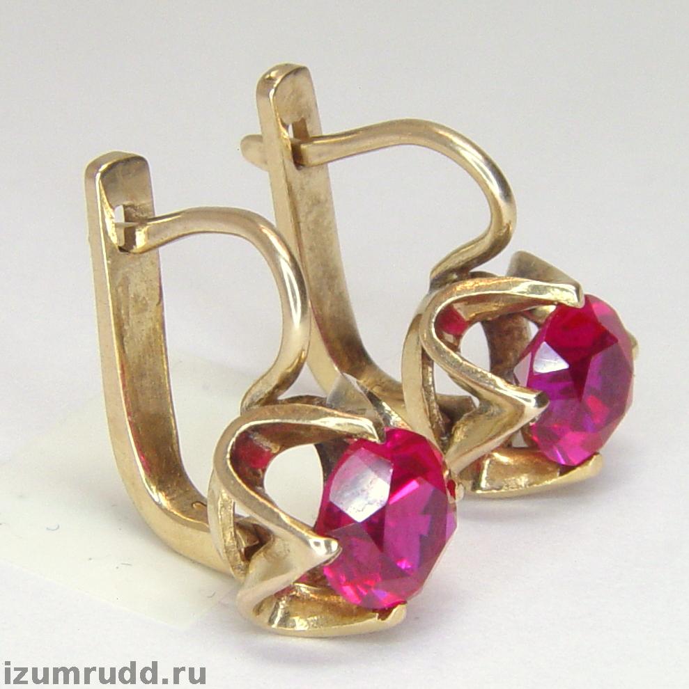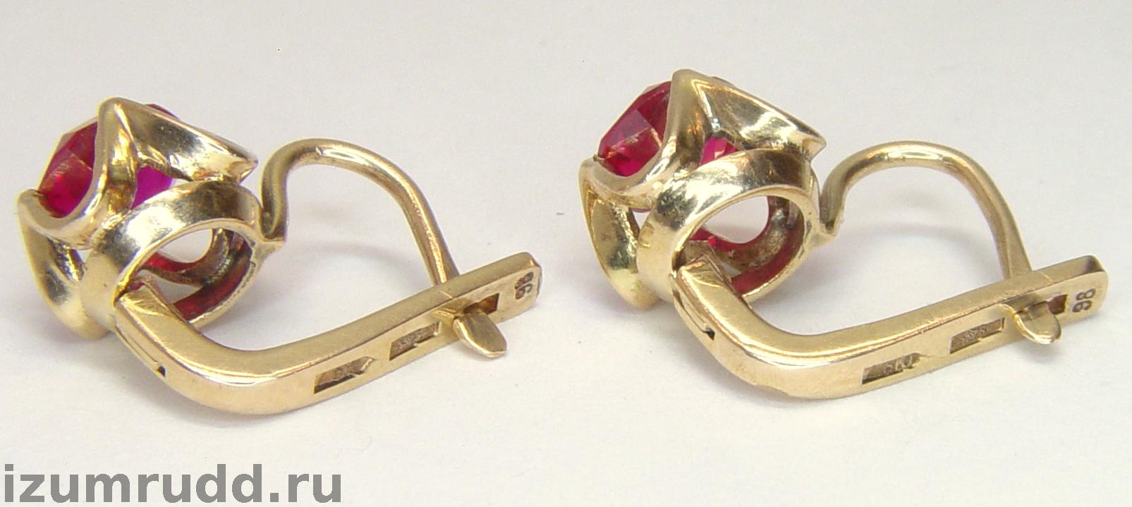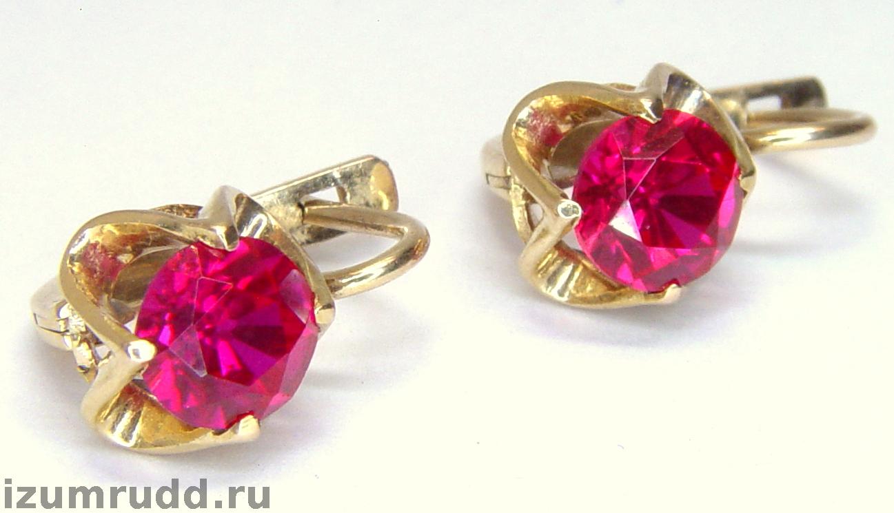 Серьги Советского времени с искусственными рубинами выполнены из розового золота 583 пробы.