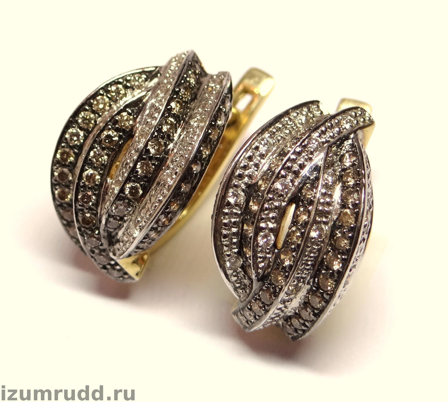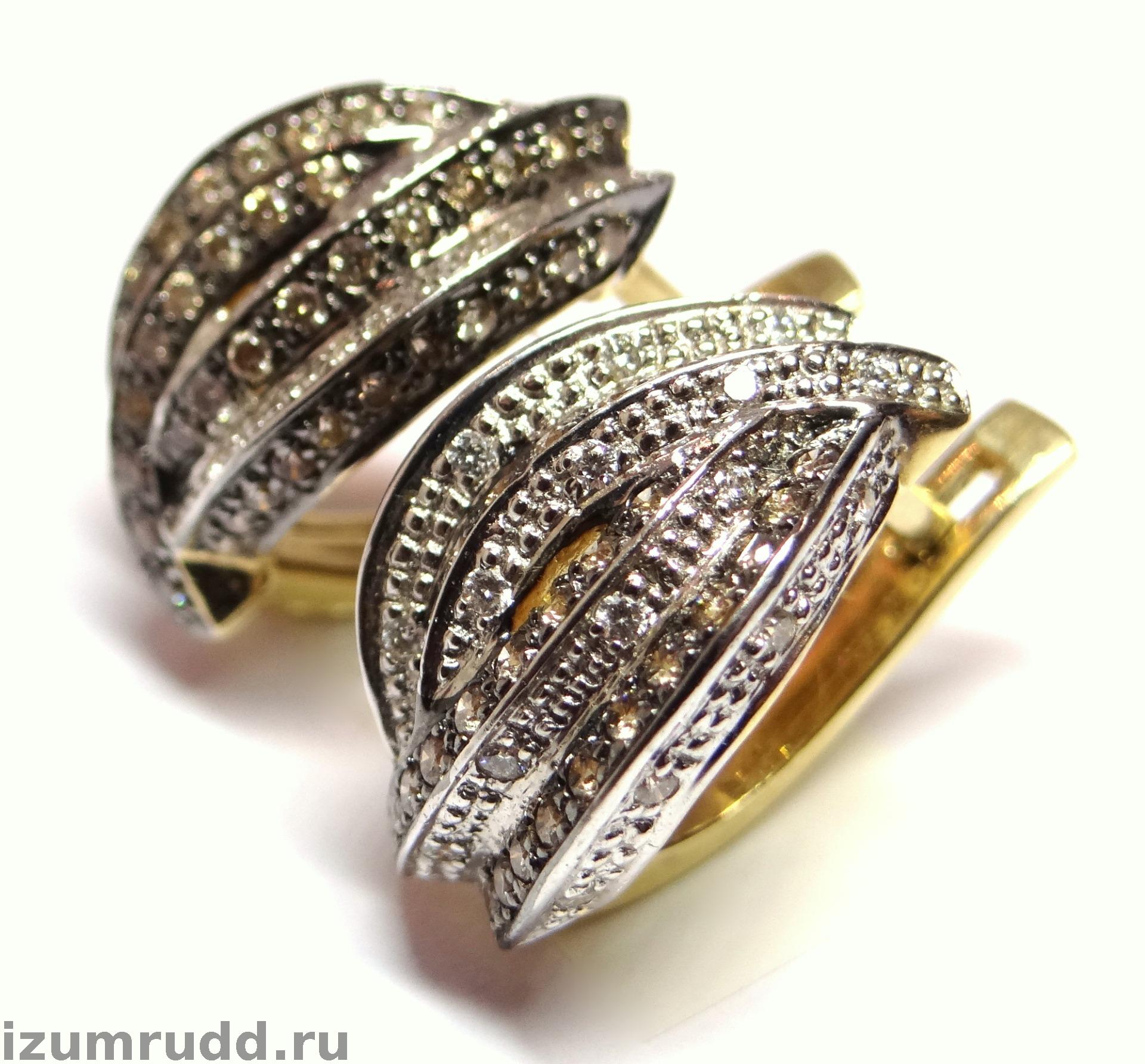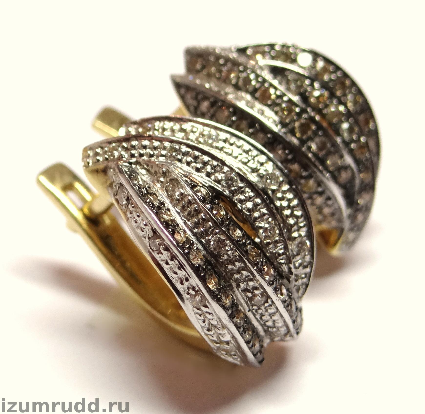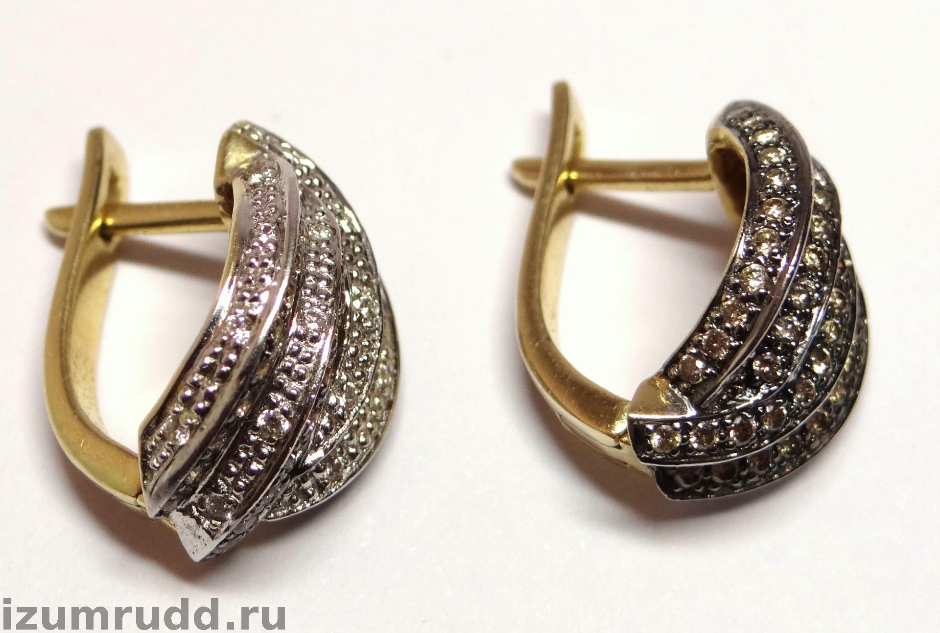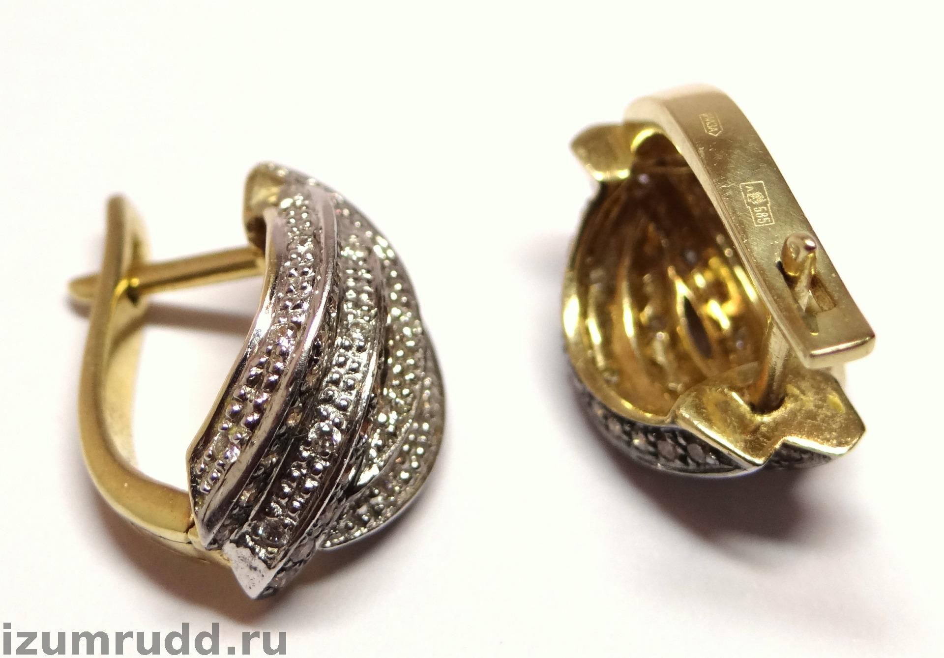 Серьги выполнены из желтого и белого золота 585 пробы.