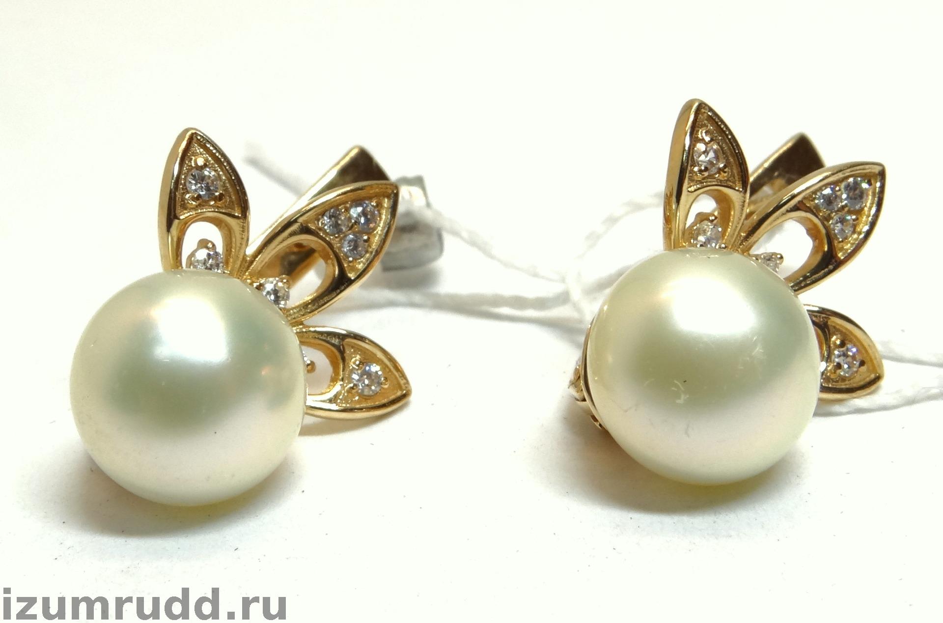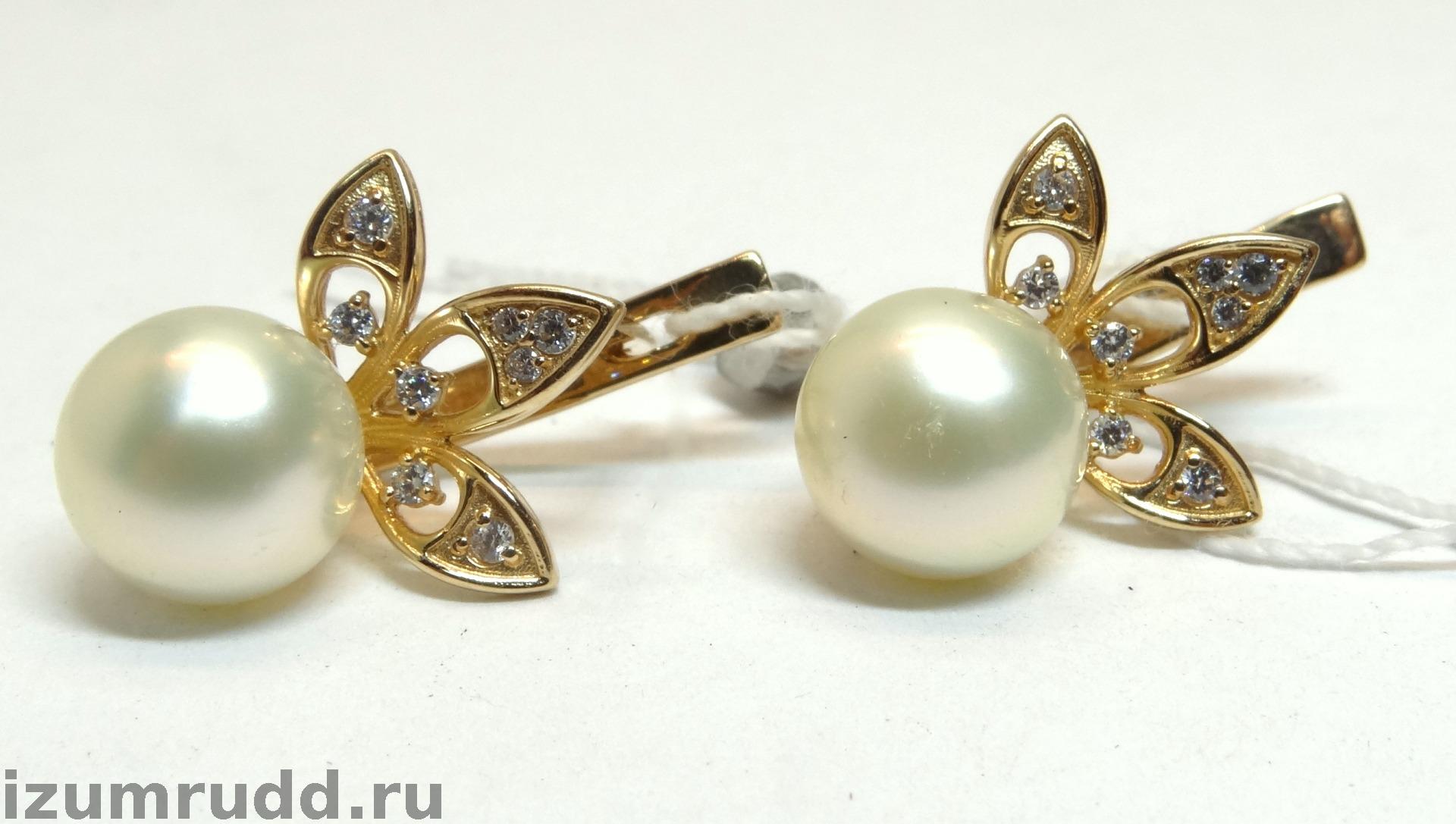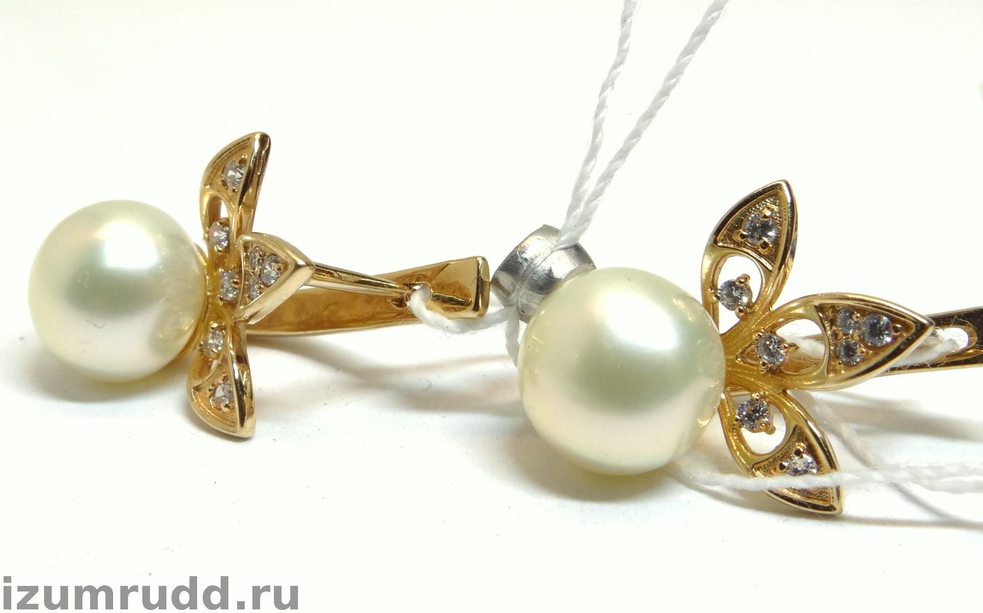 Золотые серьги 585 пробы с жемчугом и фианитами