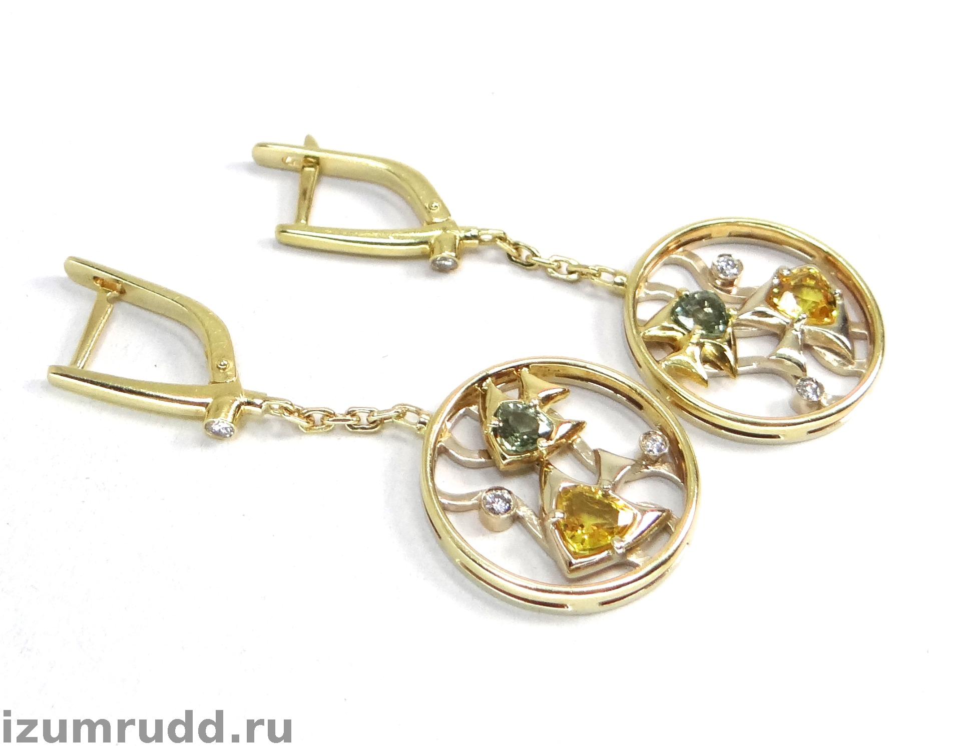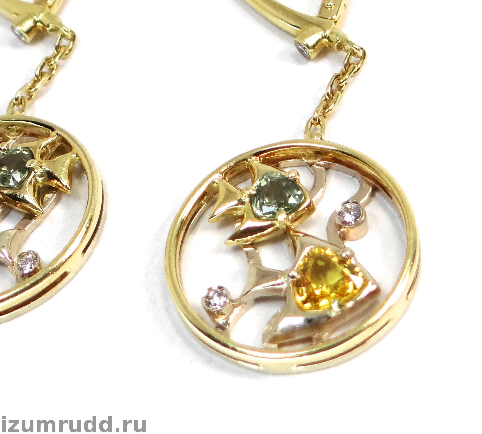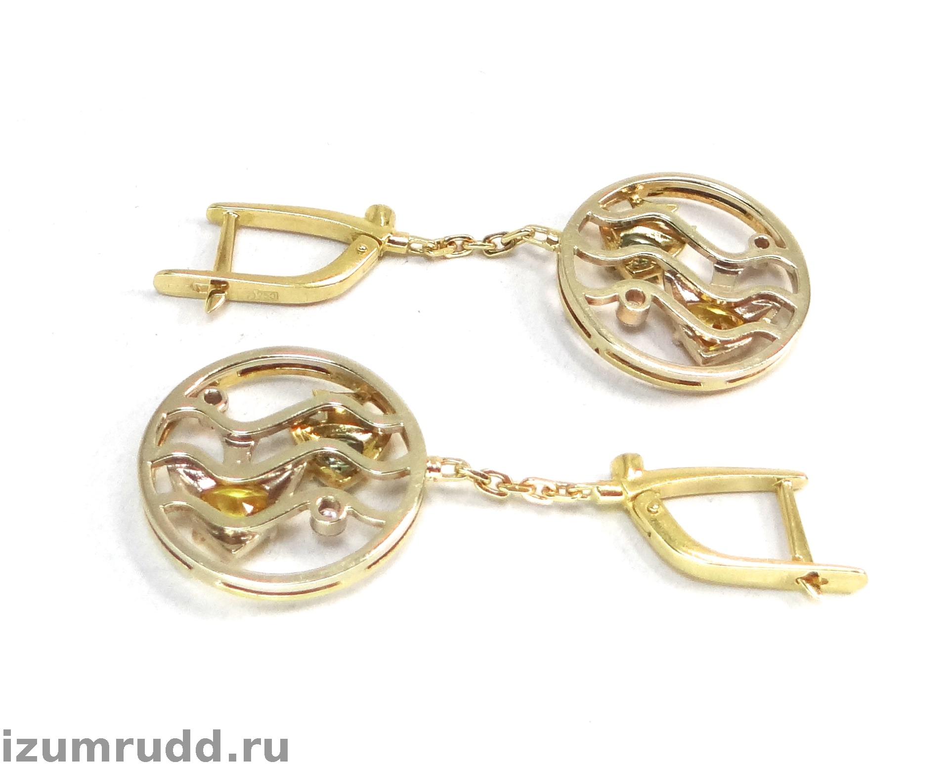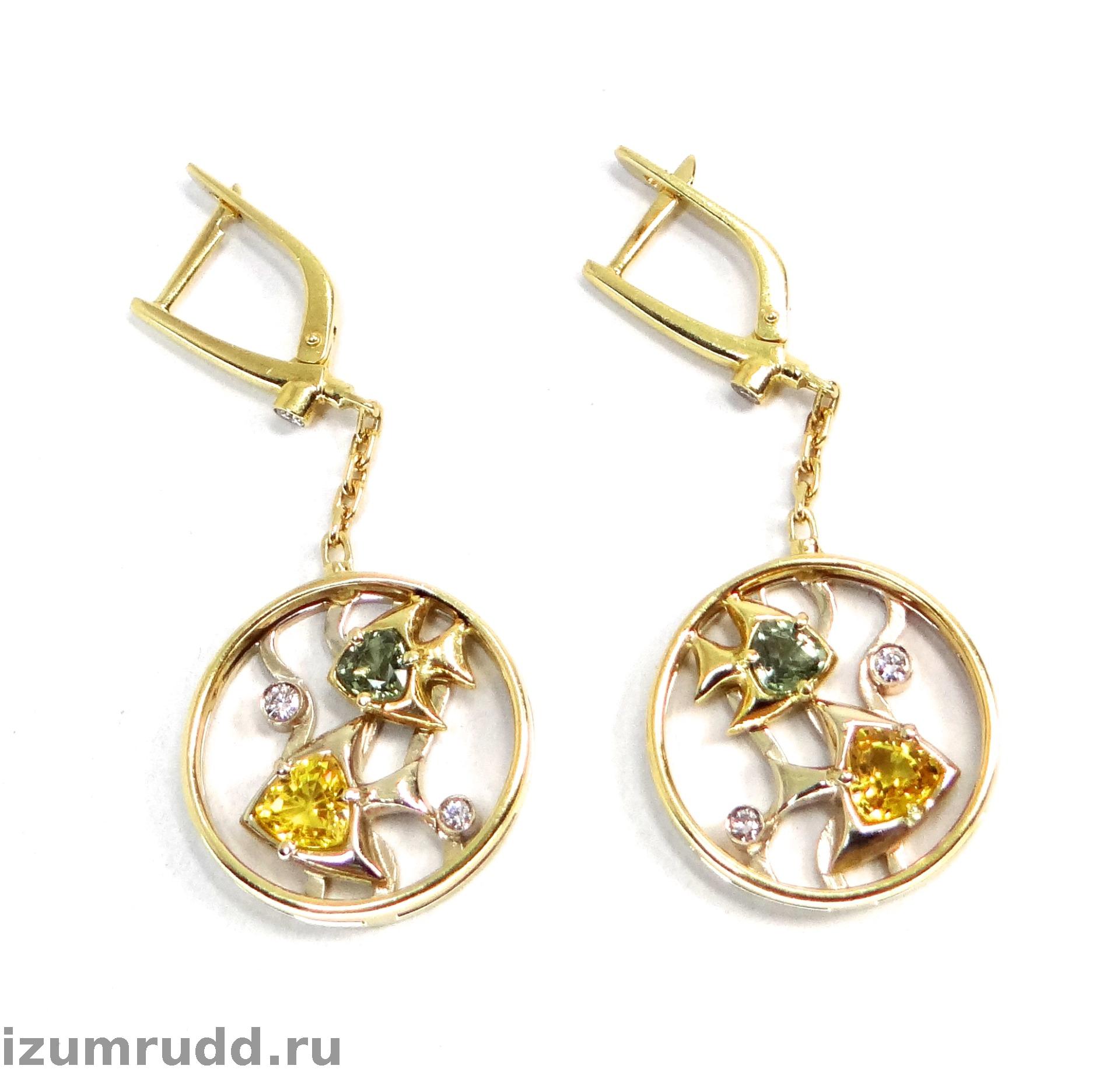 Золотые серьги 750 пробы с бриллиантами Рыбки