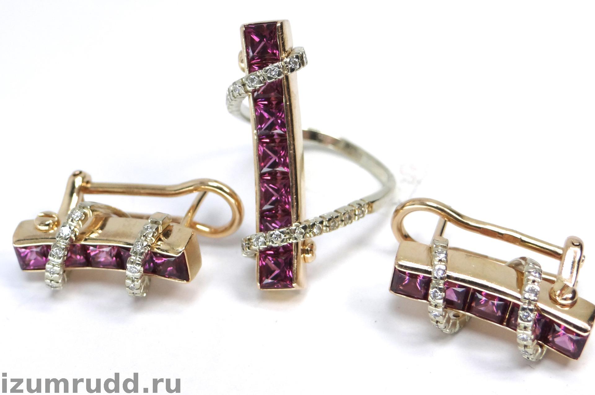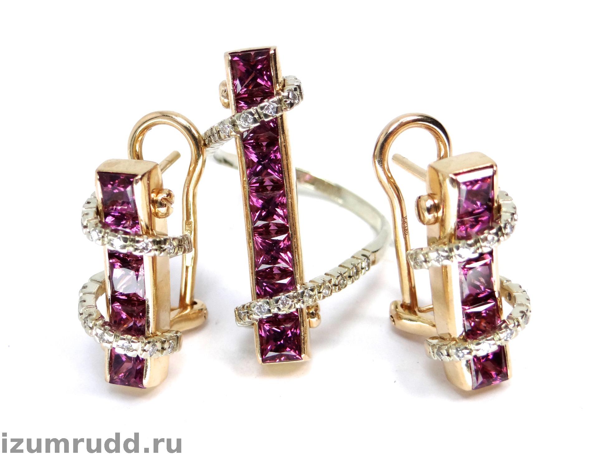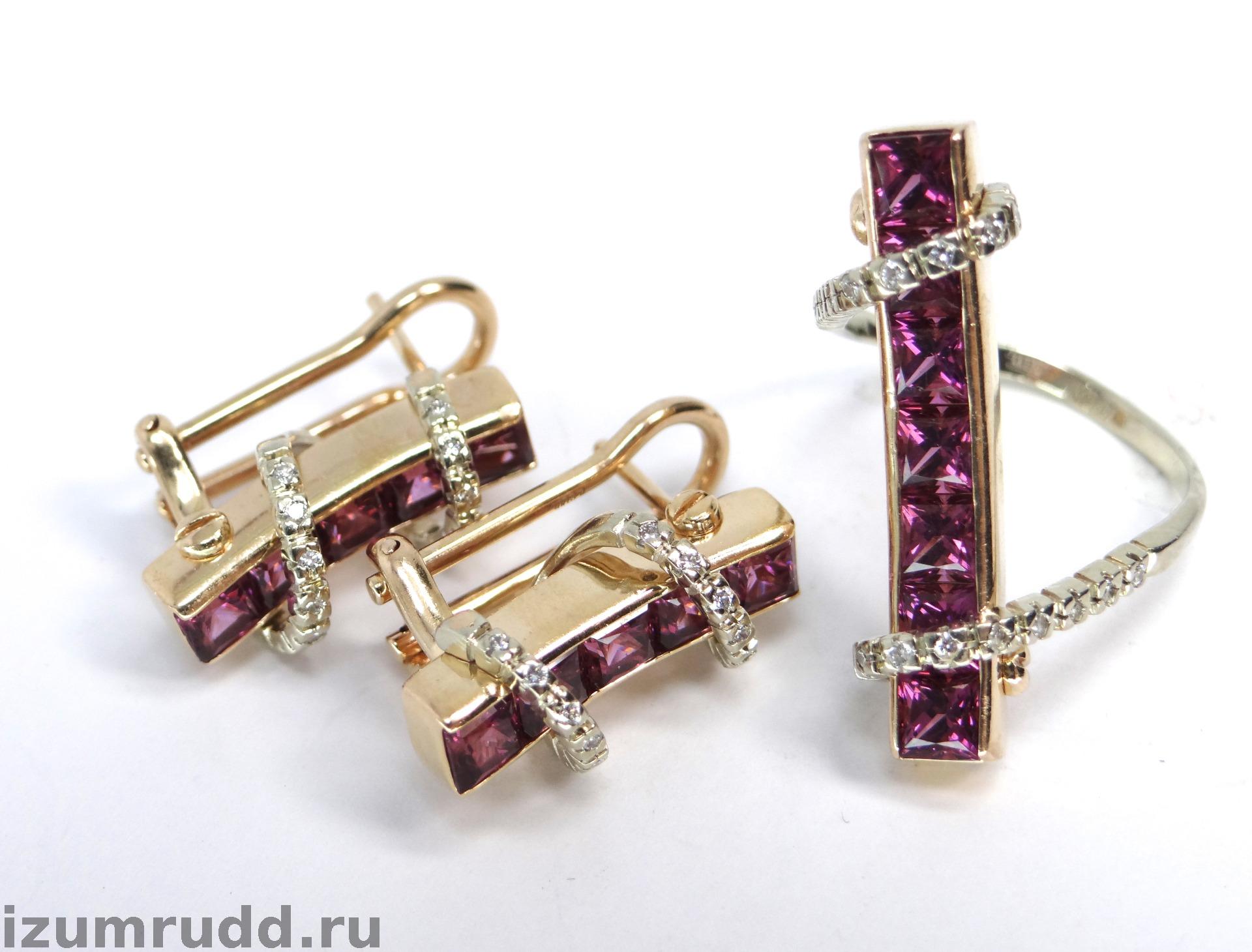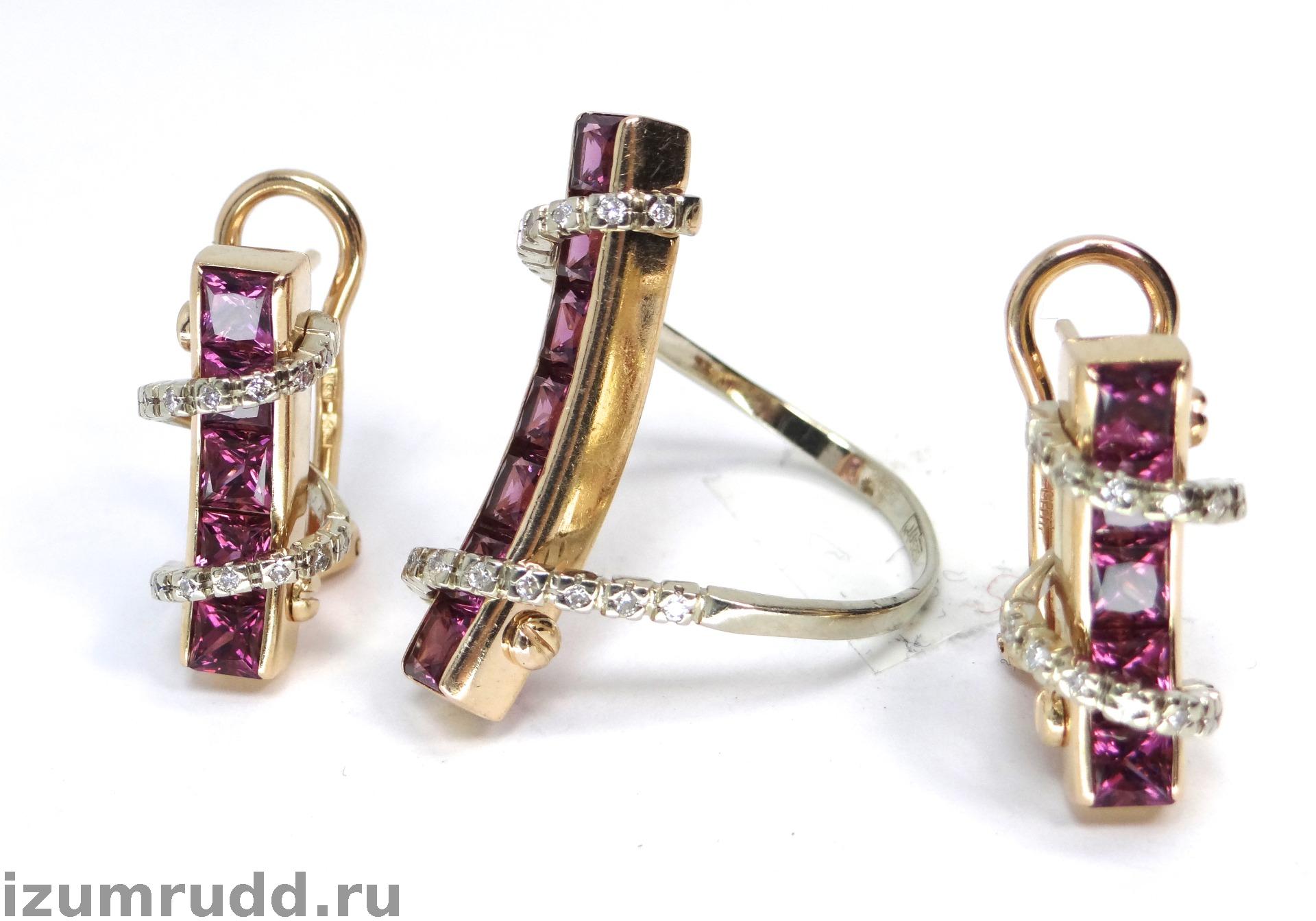 Золотые серьги и кольцо с турмалинами и бриллиантами