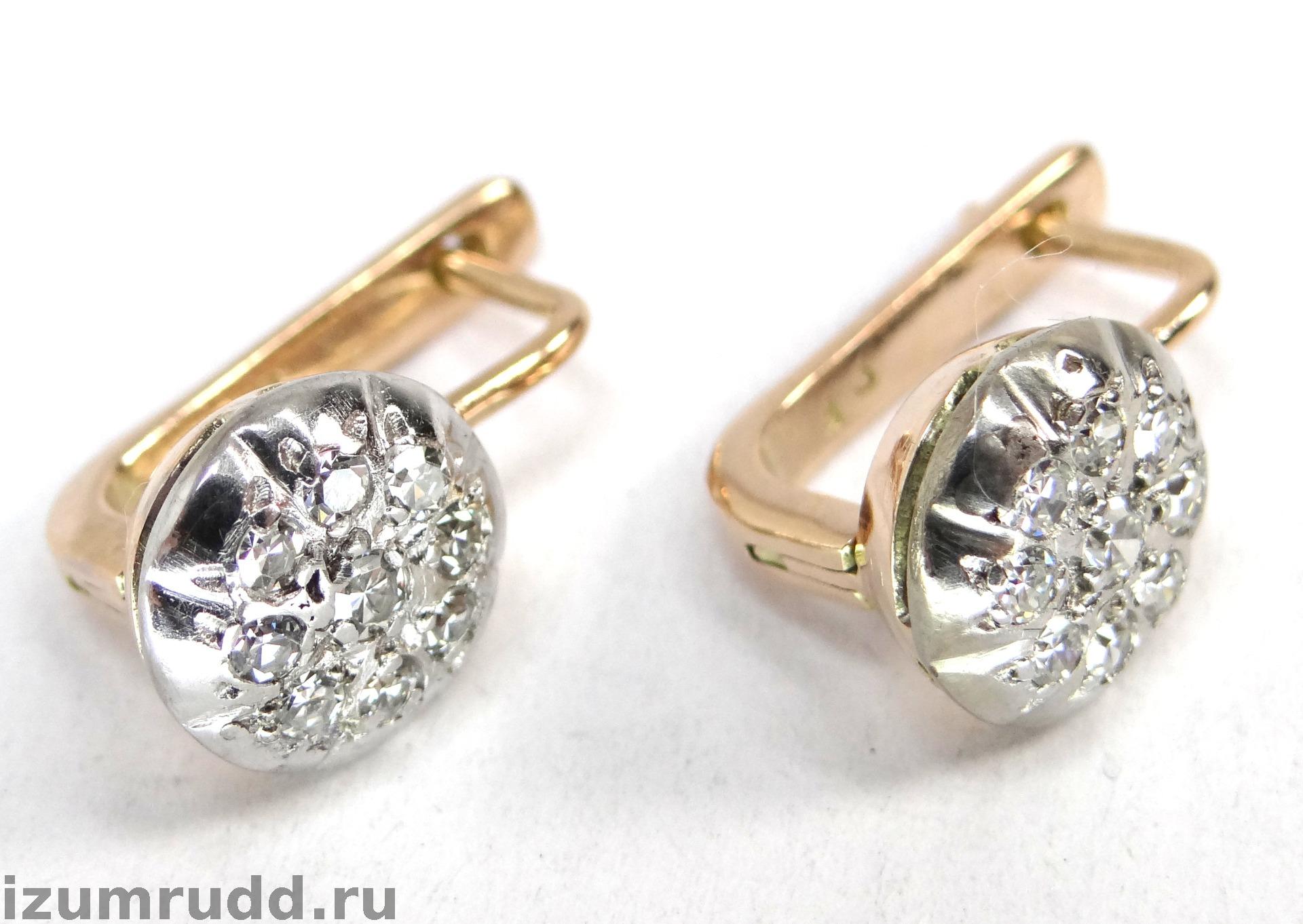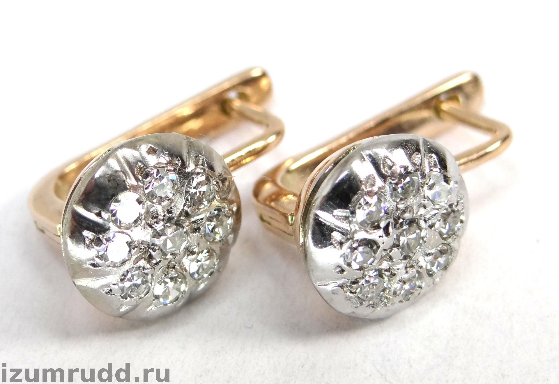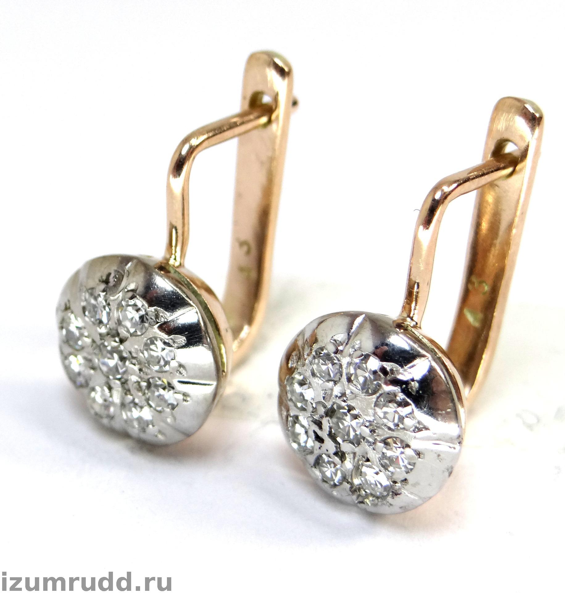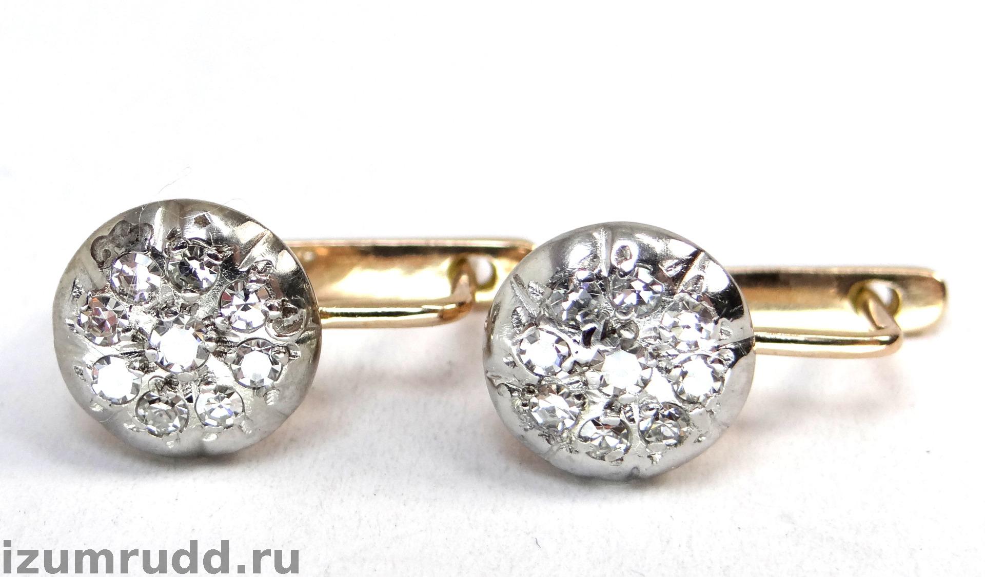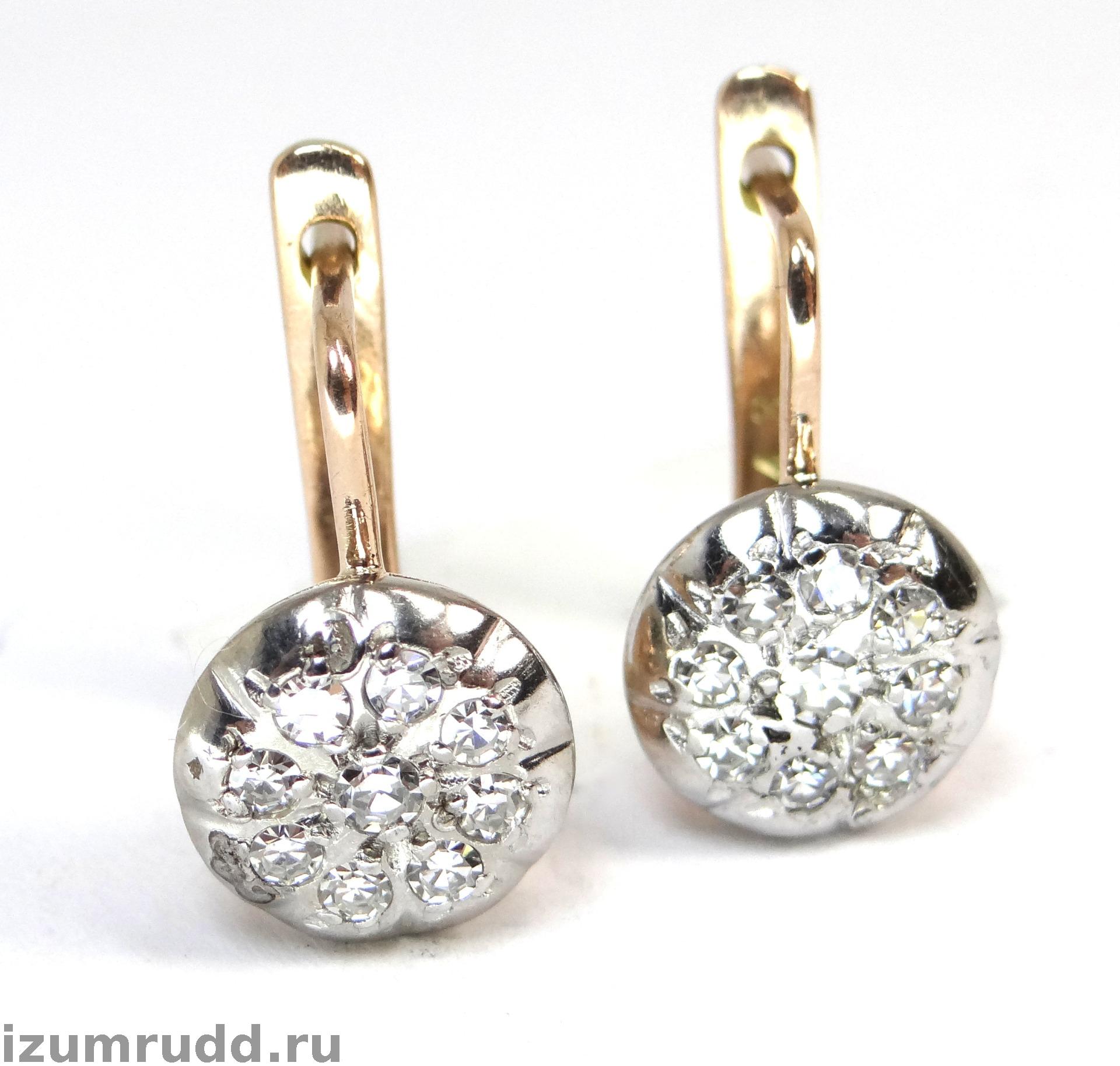 Золотые советские серьги "Малинка" с бриллиантами 0.49 ct.