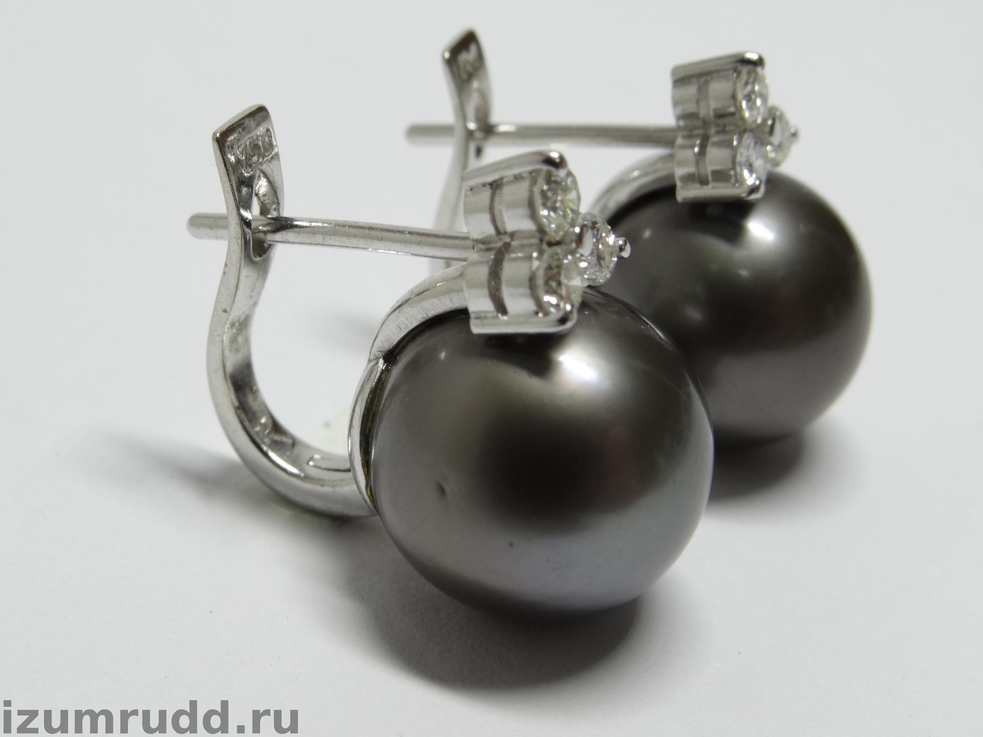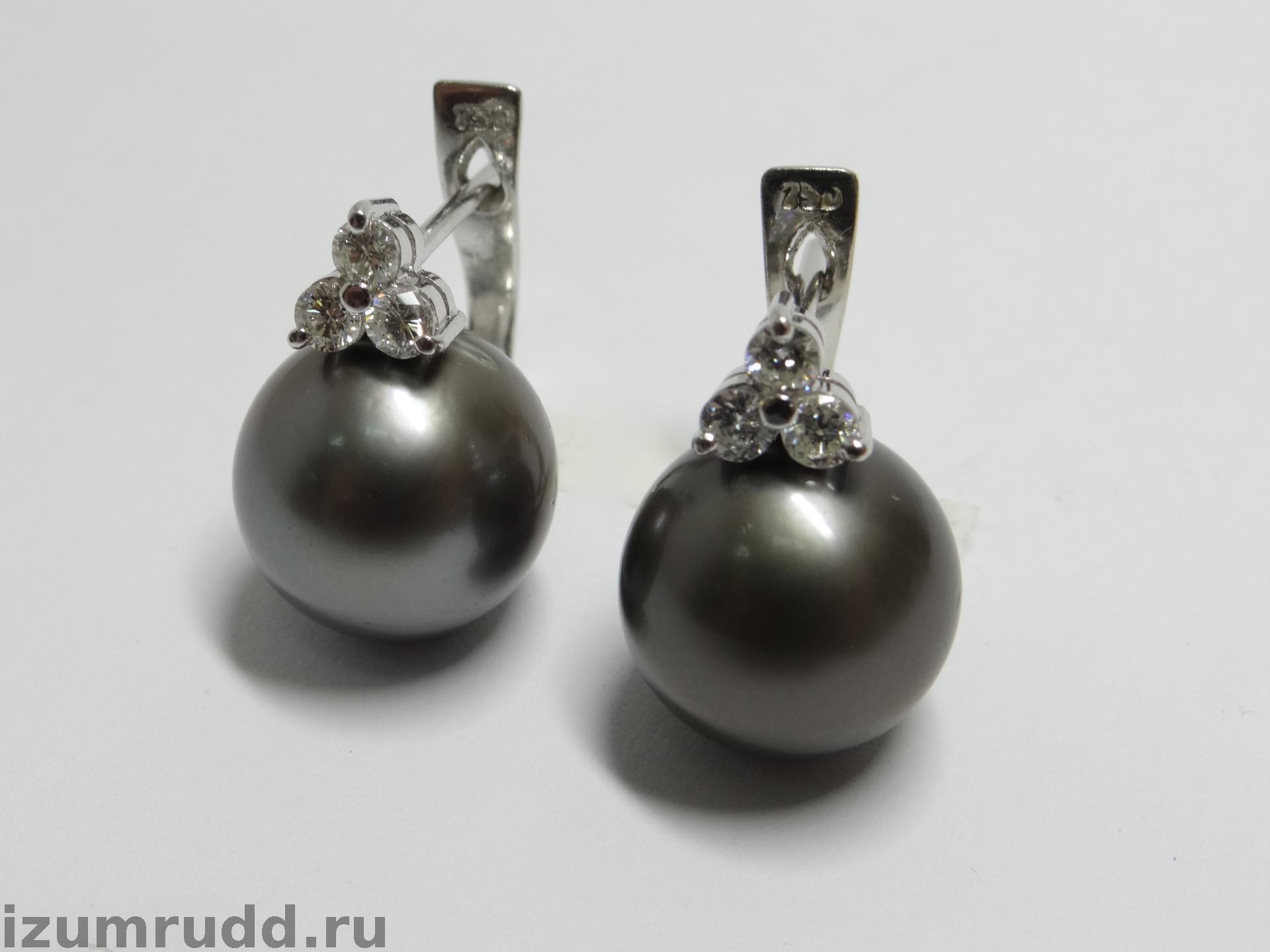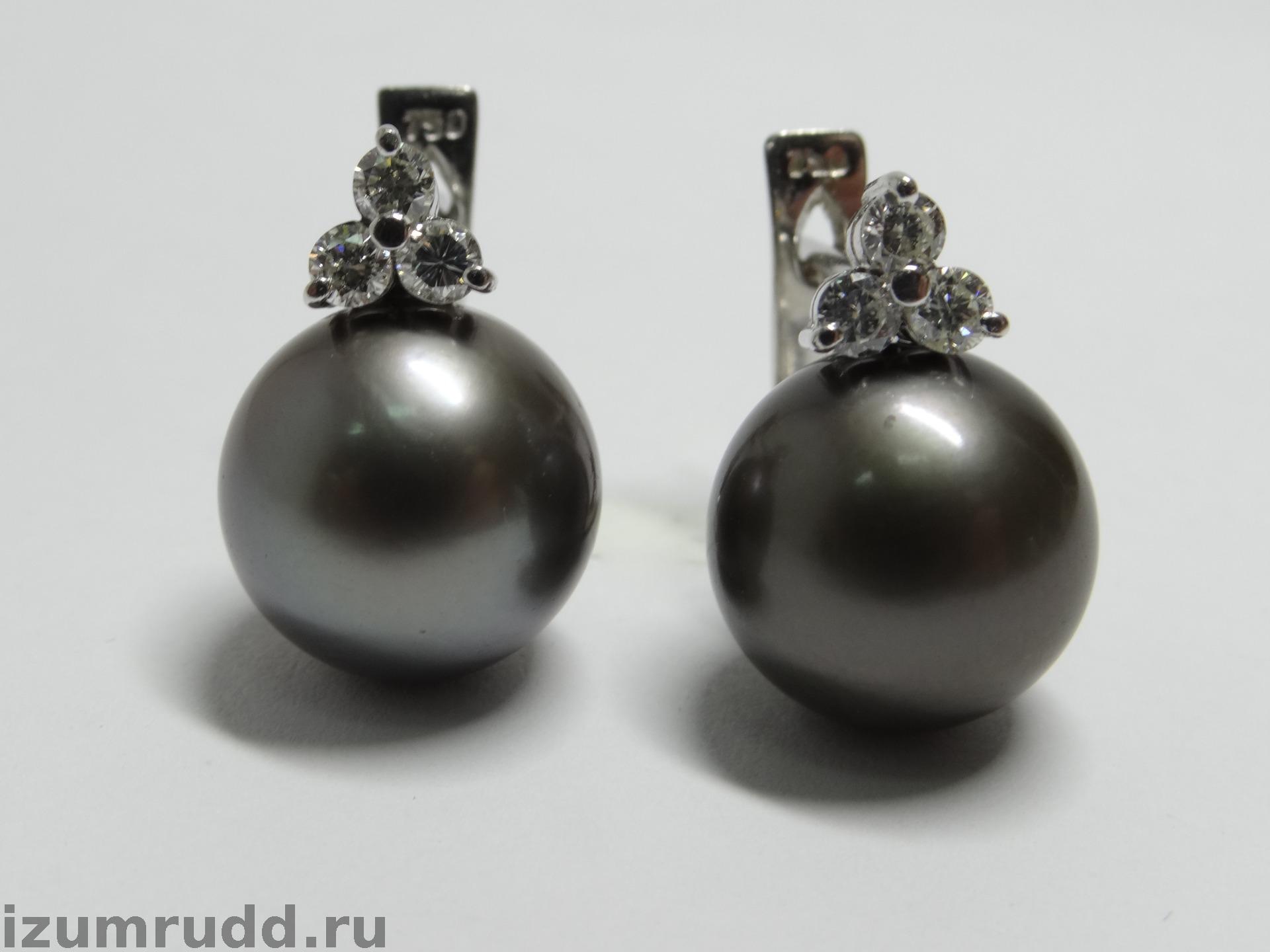 Золотые серьги с крупными жемчужинами и бриллиантами, 750 проба