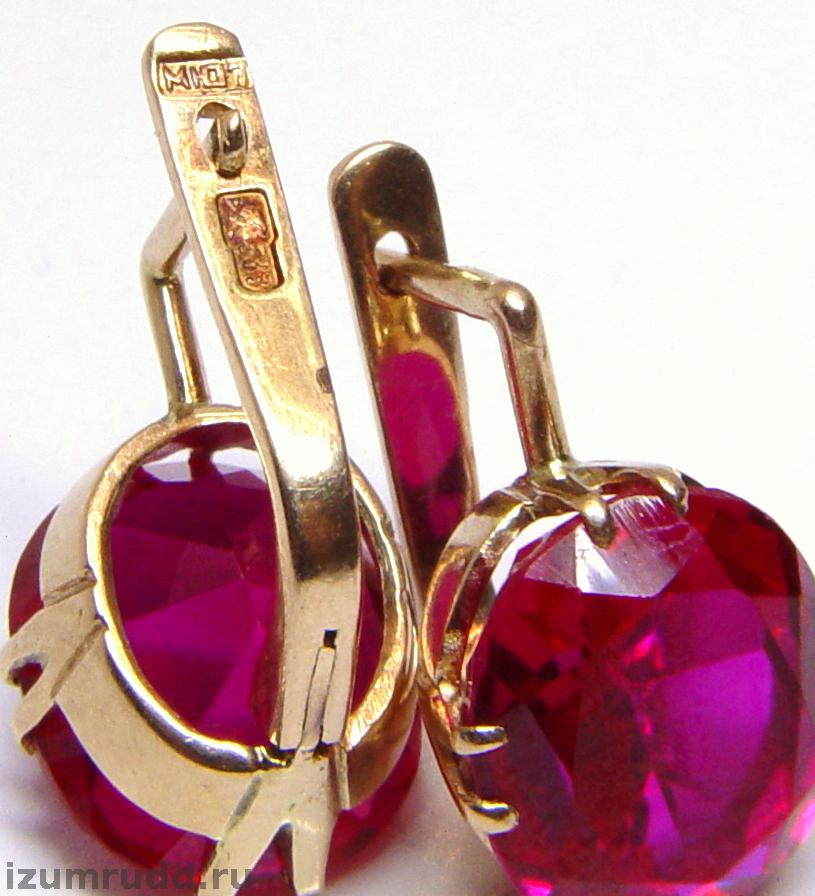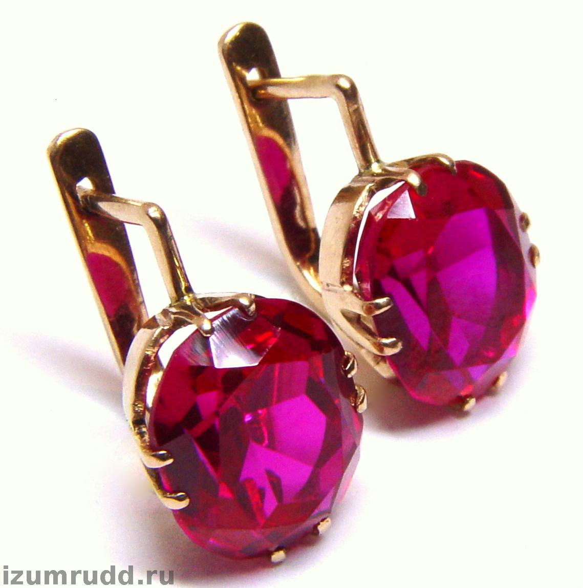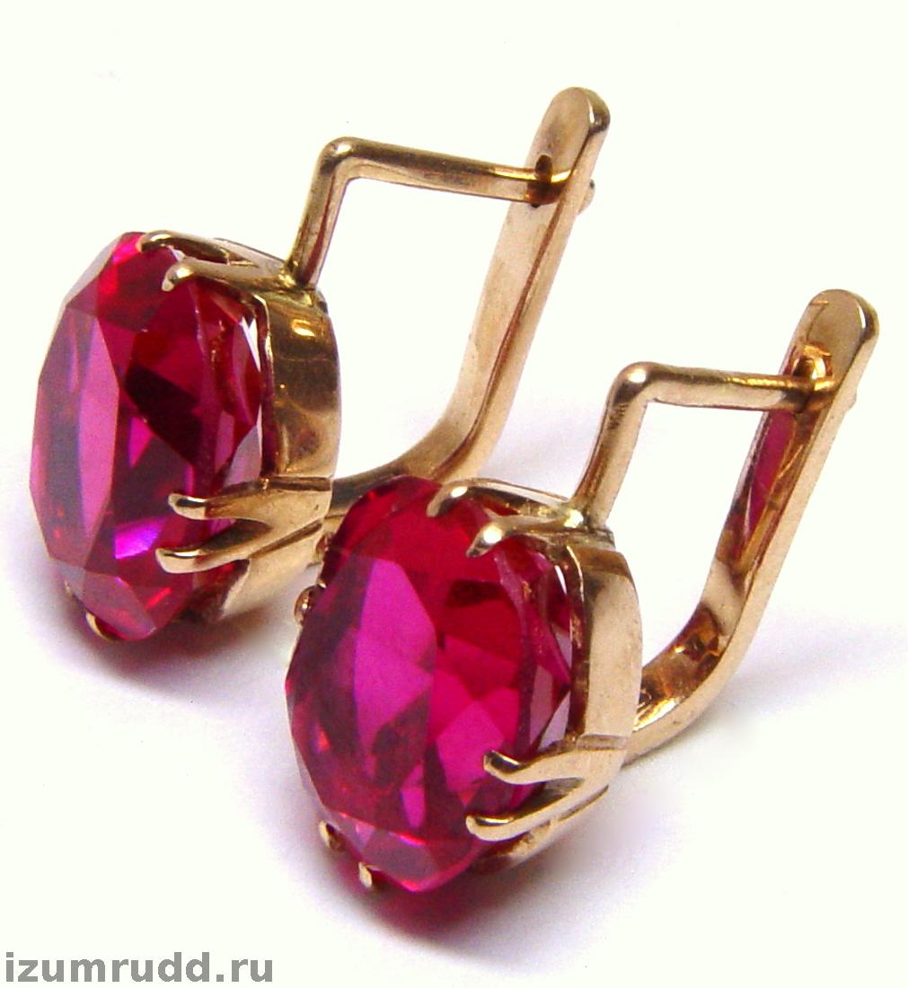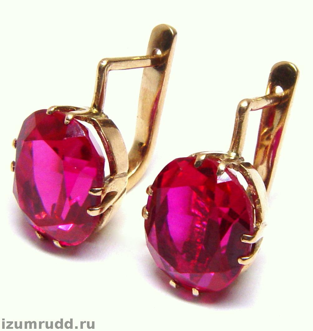 Золотые серьги с синтетическими корундами 583 пр
