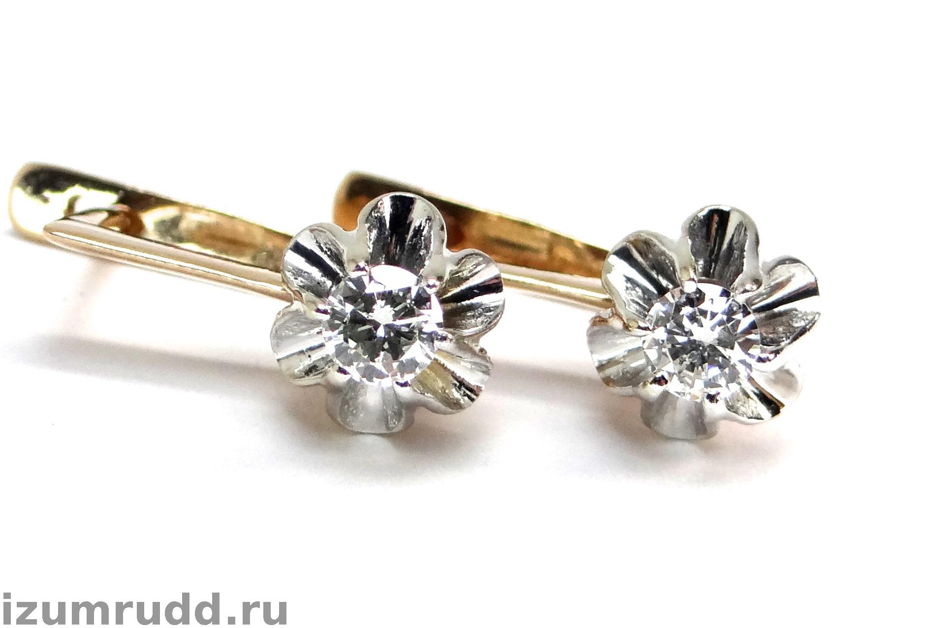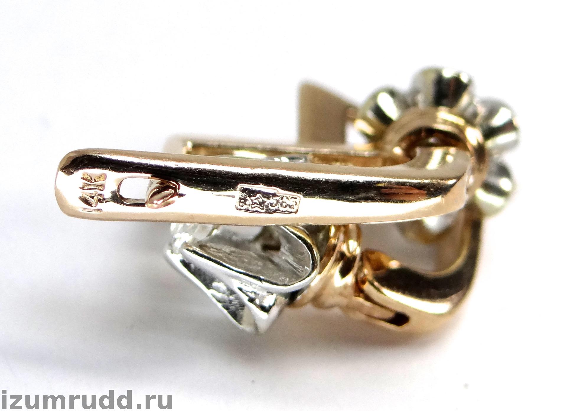 Серьги выполнены из розового и белого золота 585 пробы.