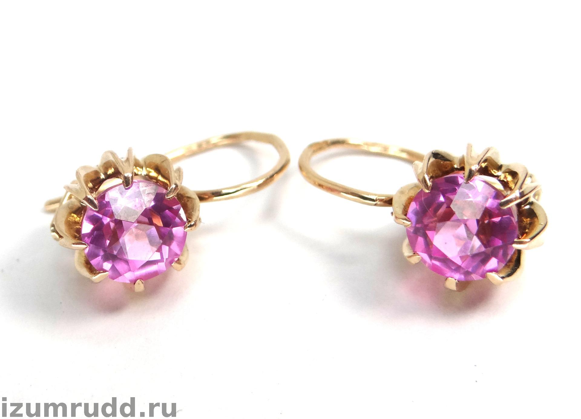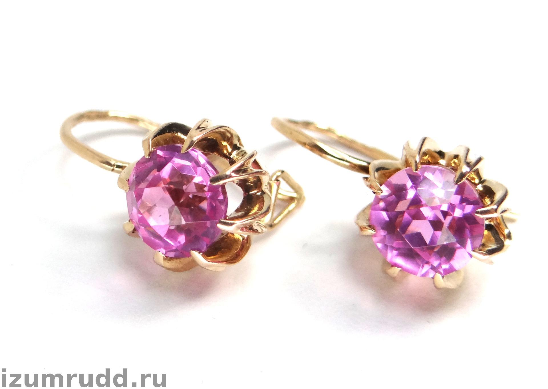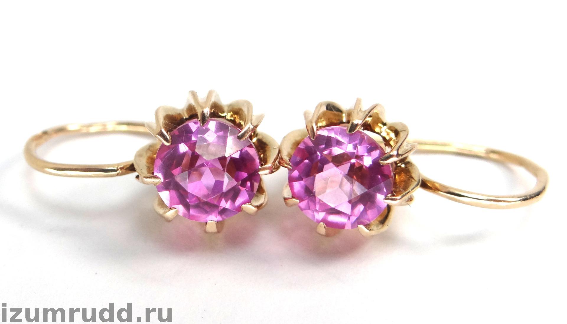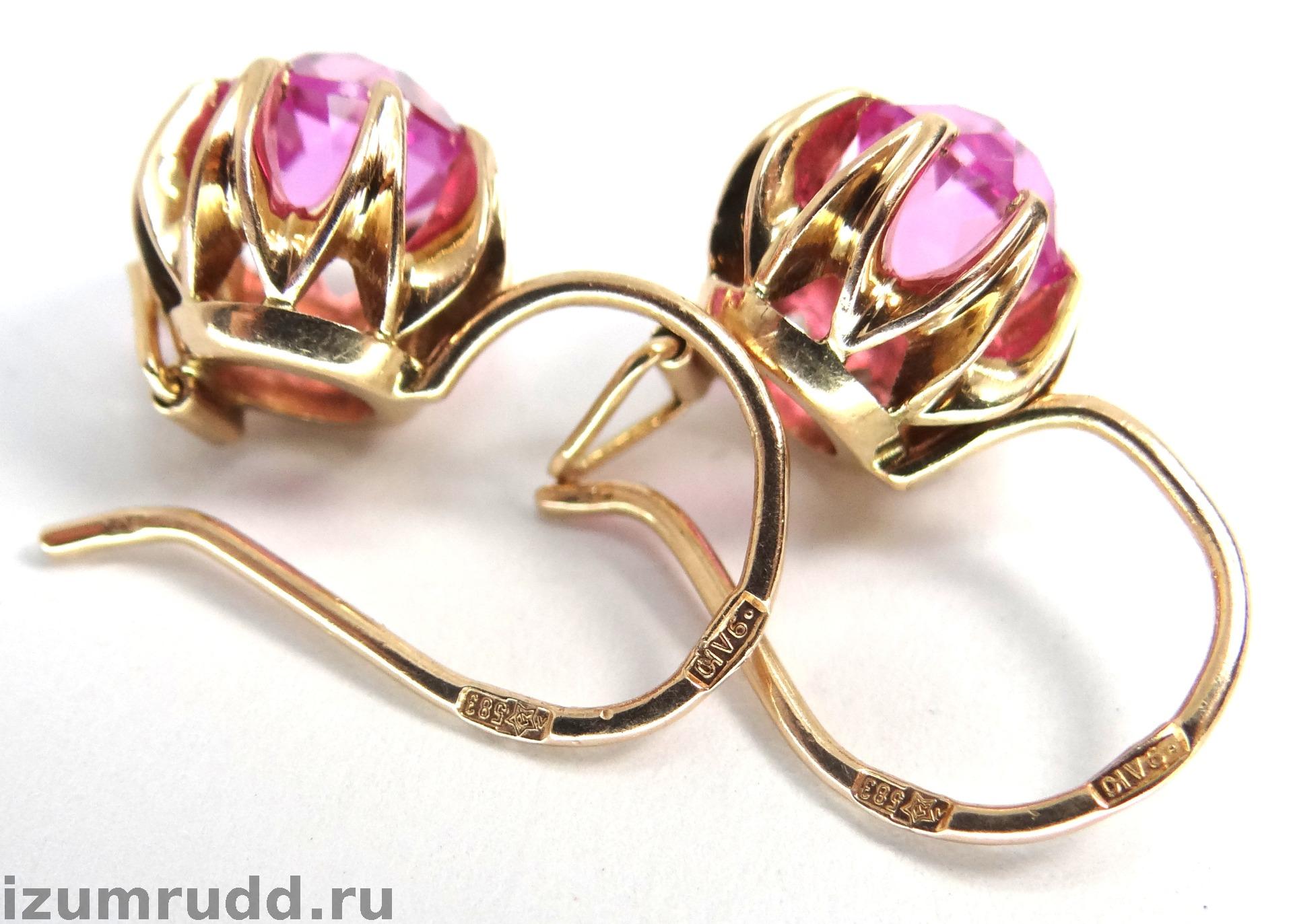 Серьги Советского периода с искусственными розовыми сапфирами выполнены из розового золота 583 пробы.