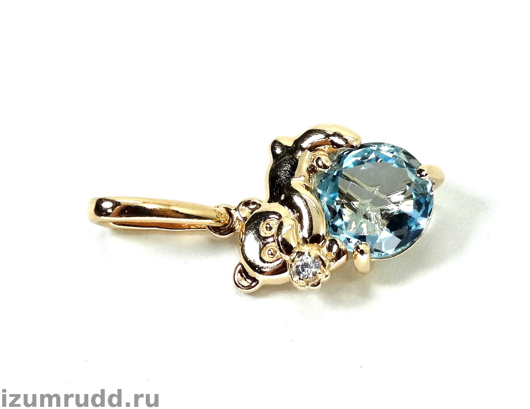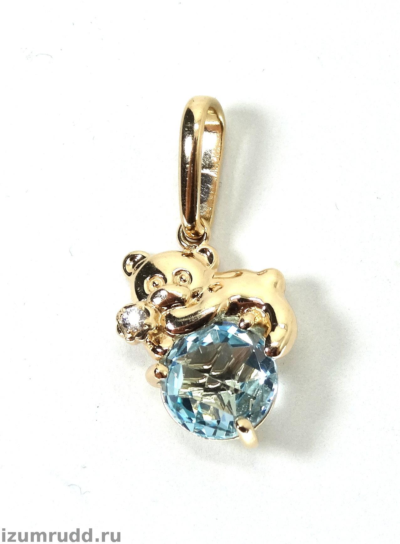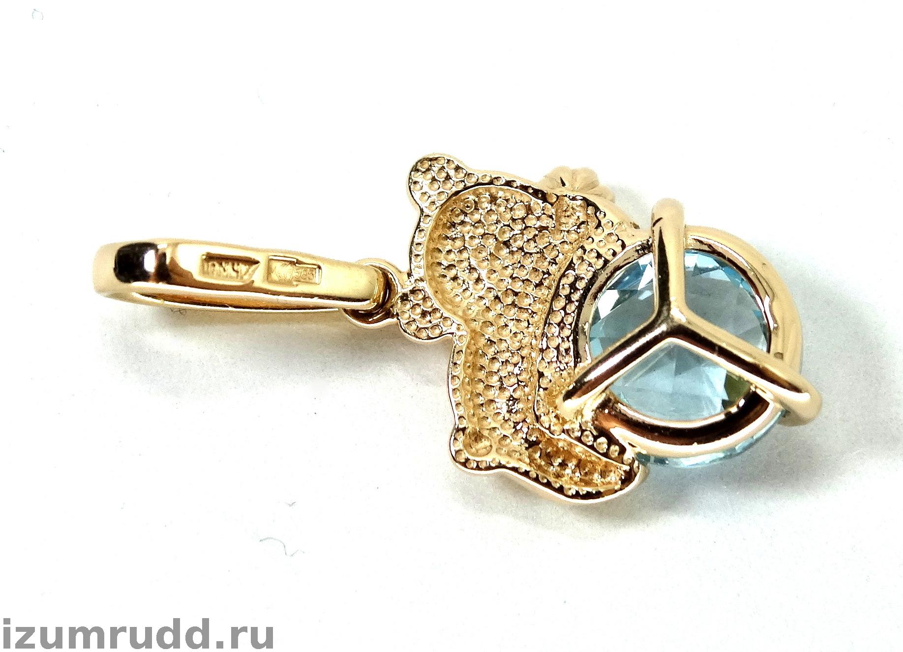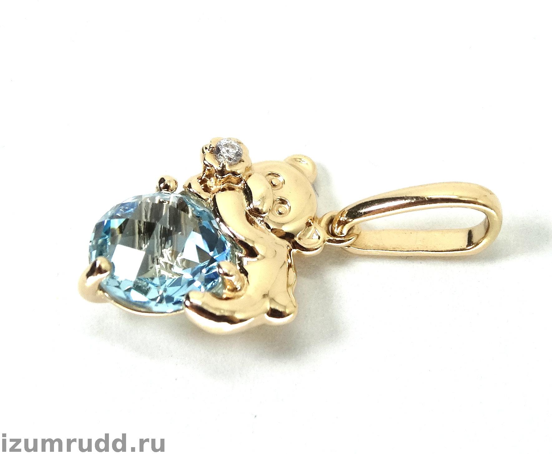 Золотой кулон подвеска Мишка с топазом и фианитом