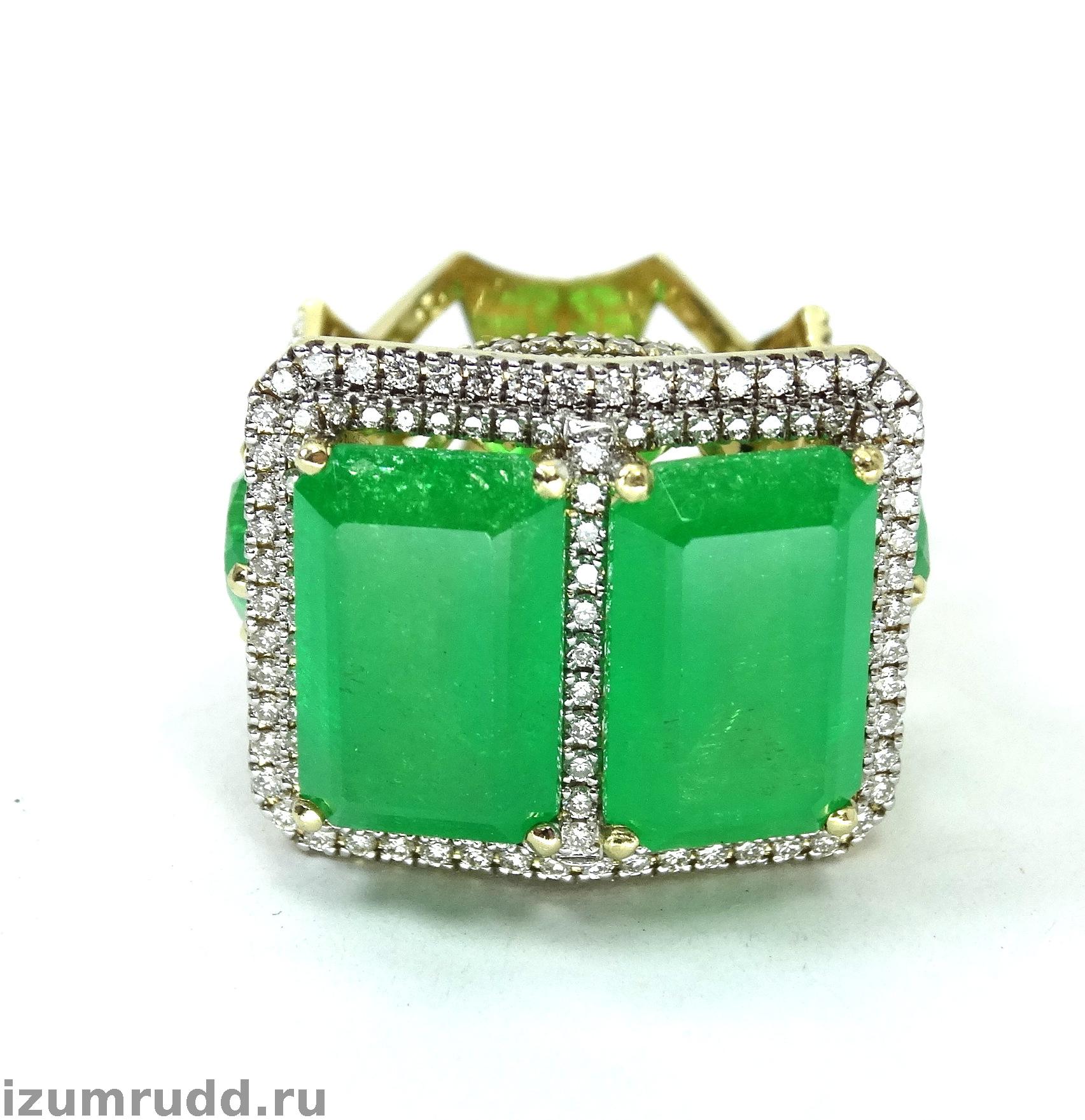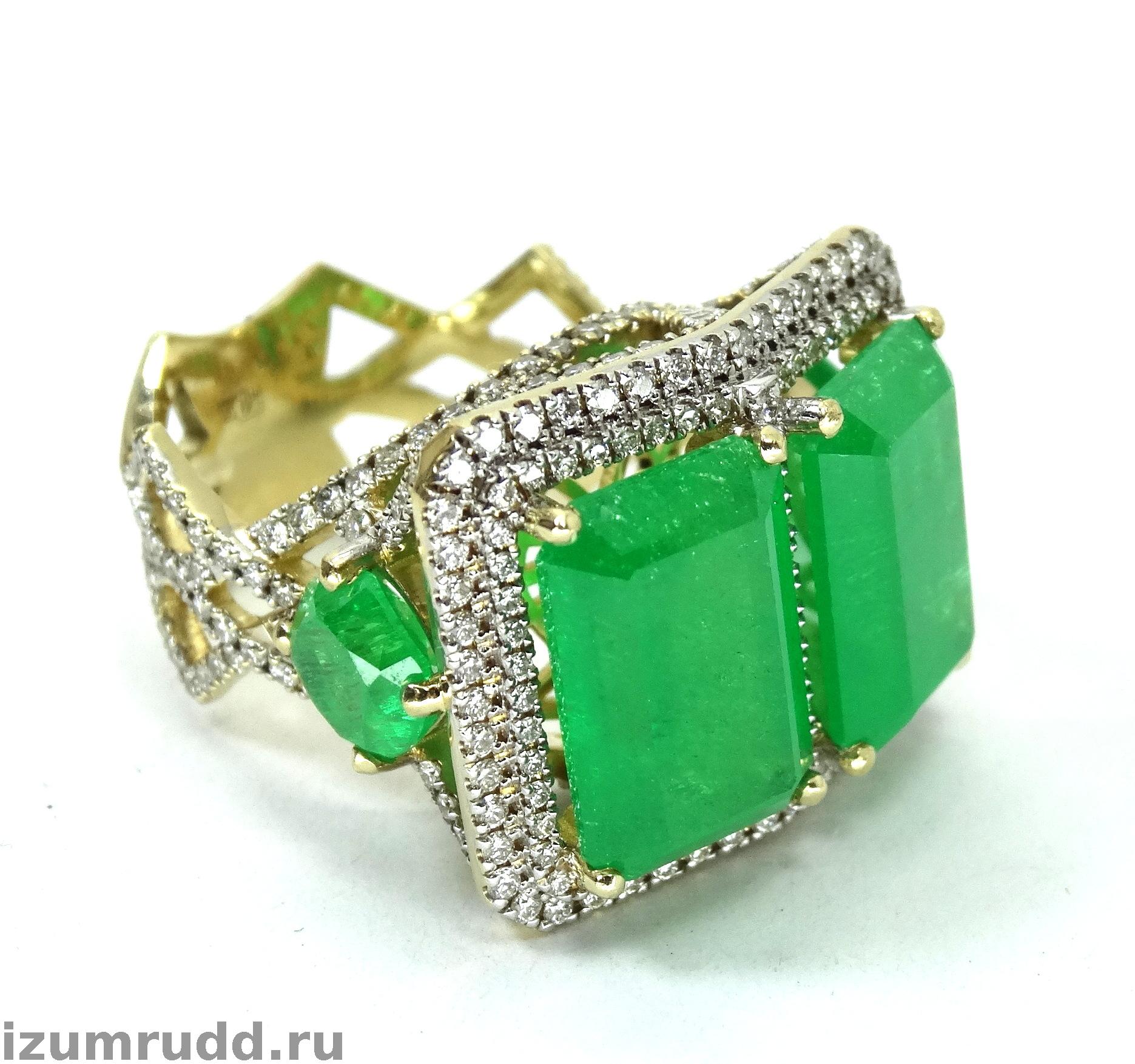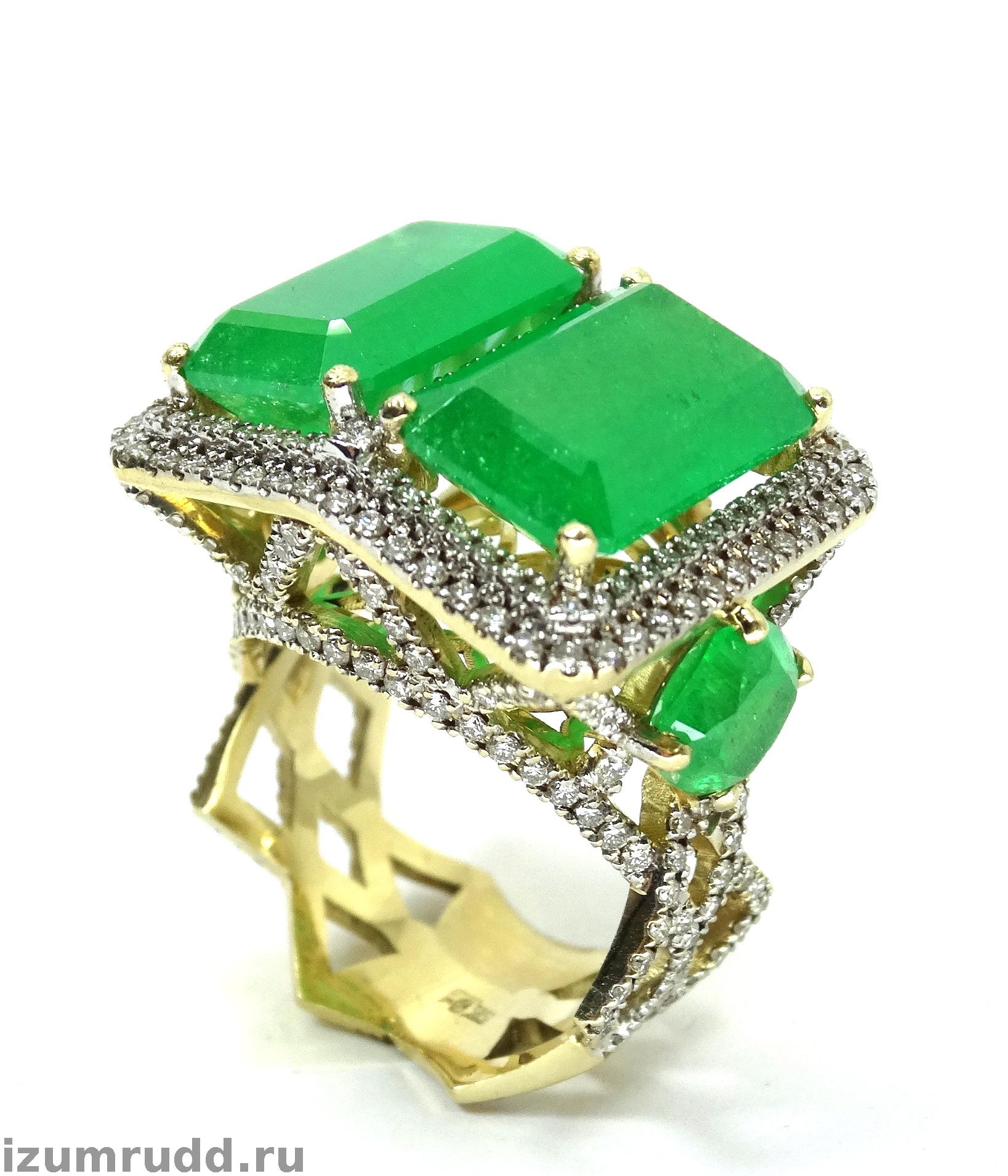 Золотое кольцо с бриллиантами и синтетическими изумрудами