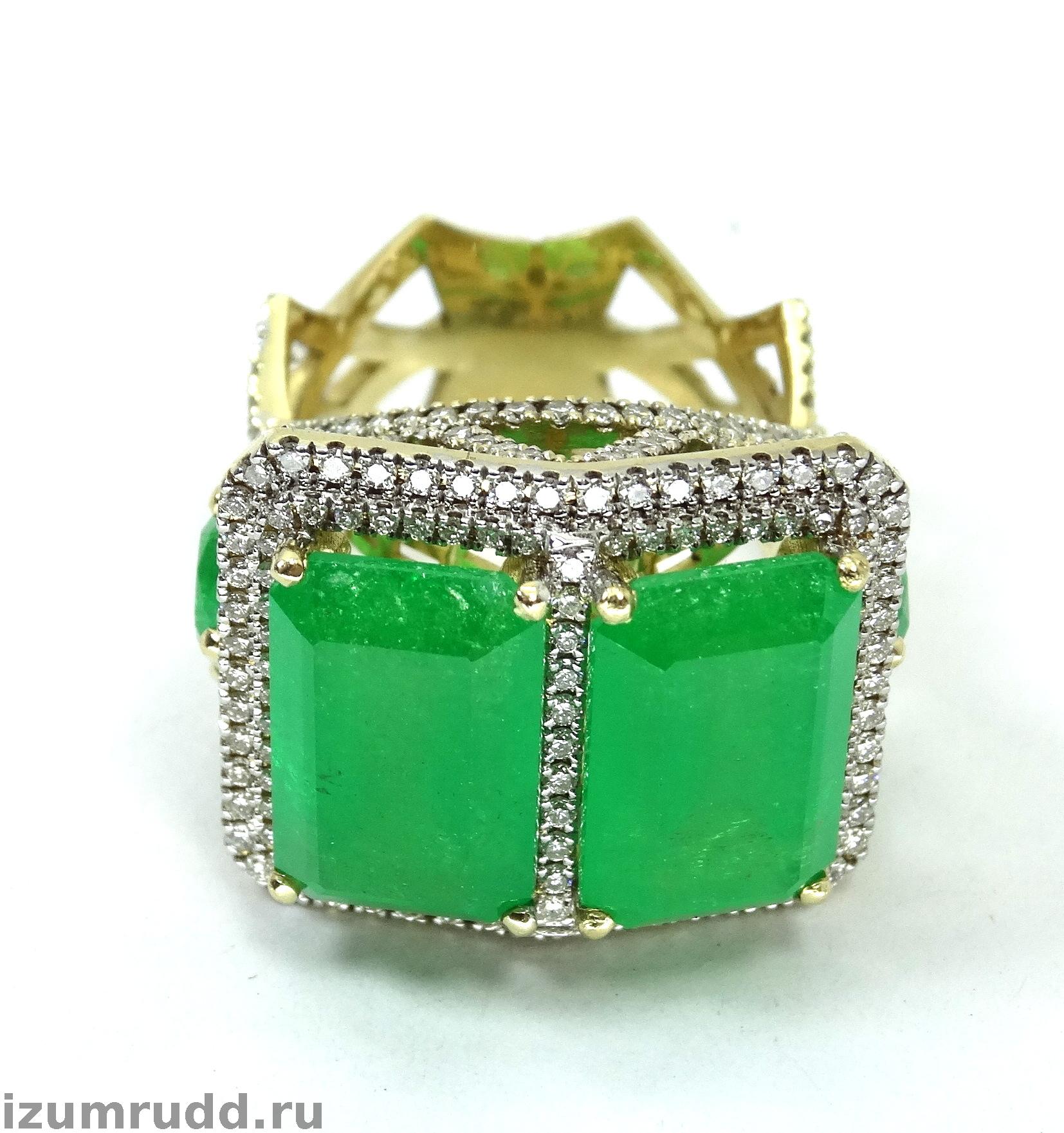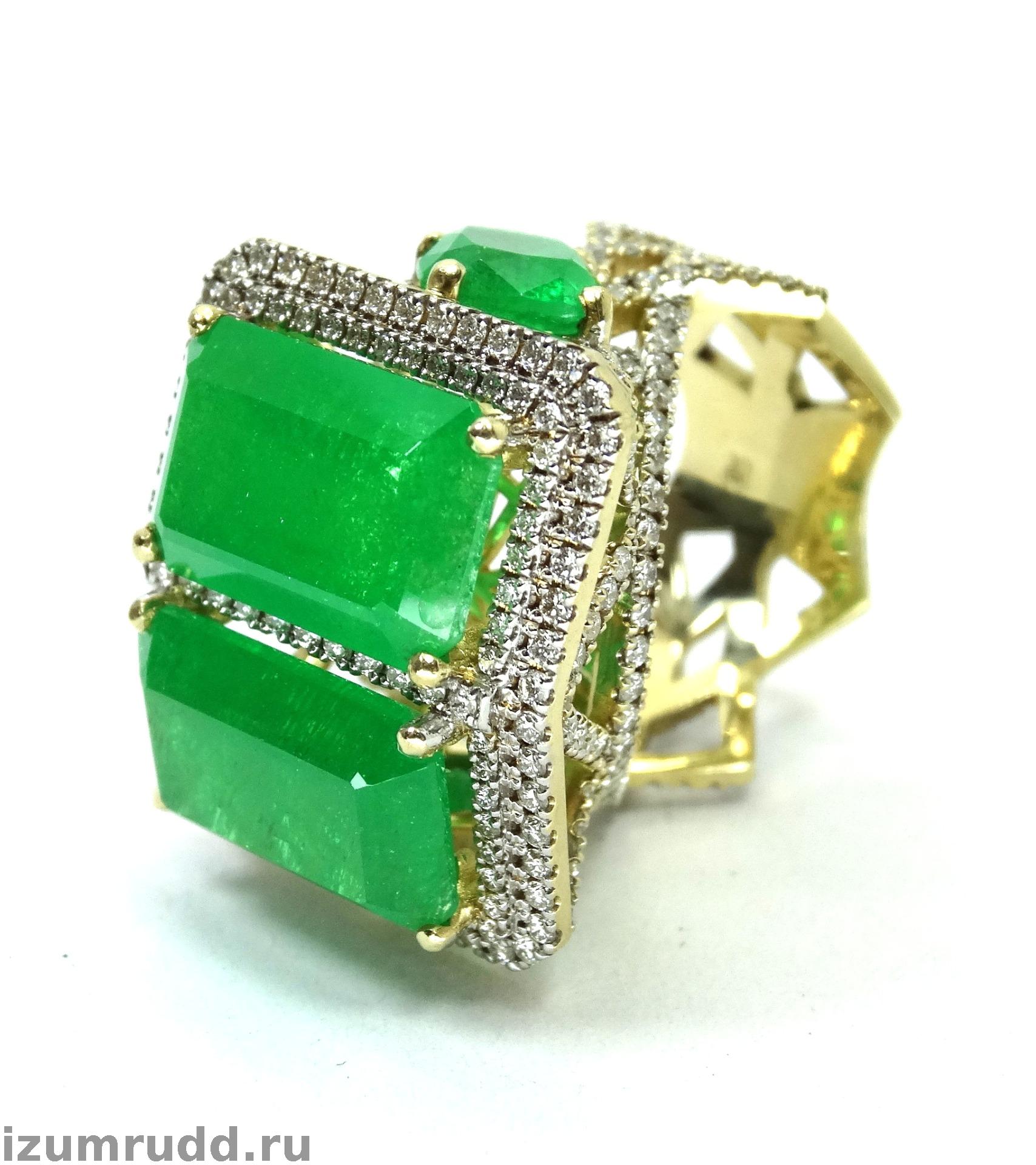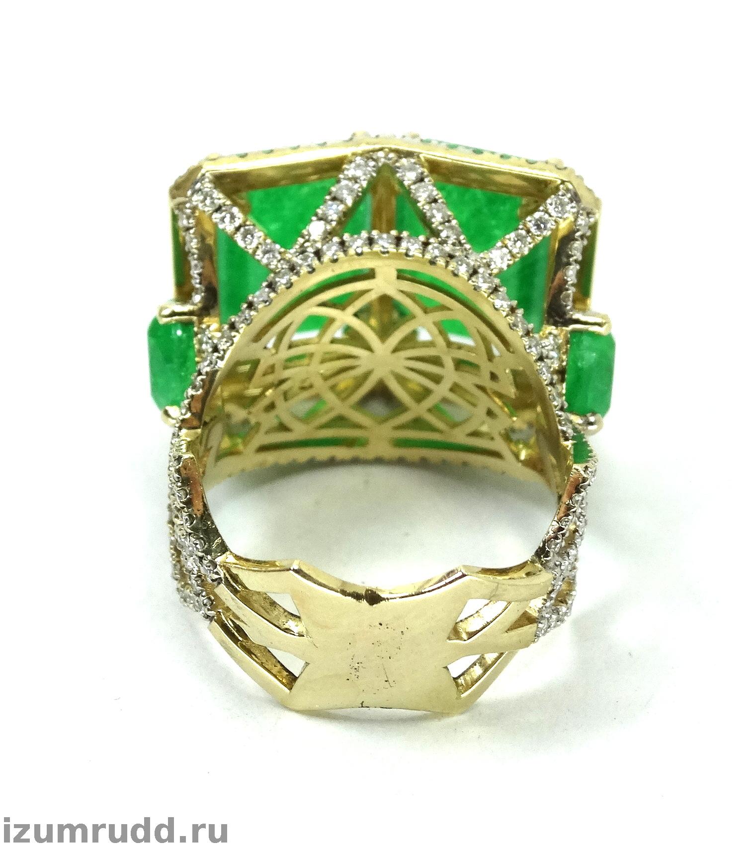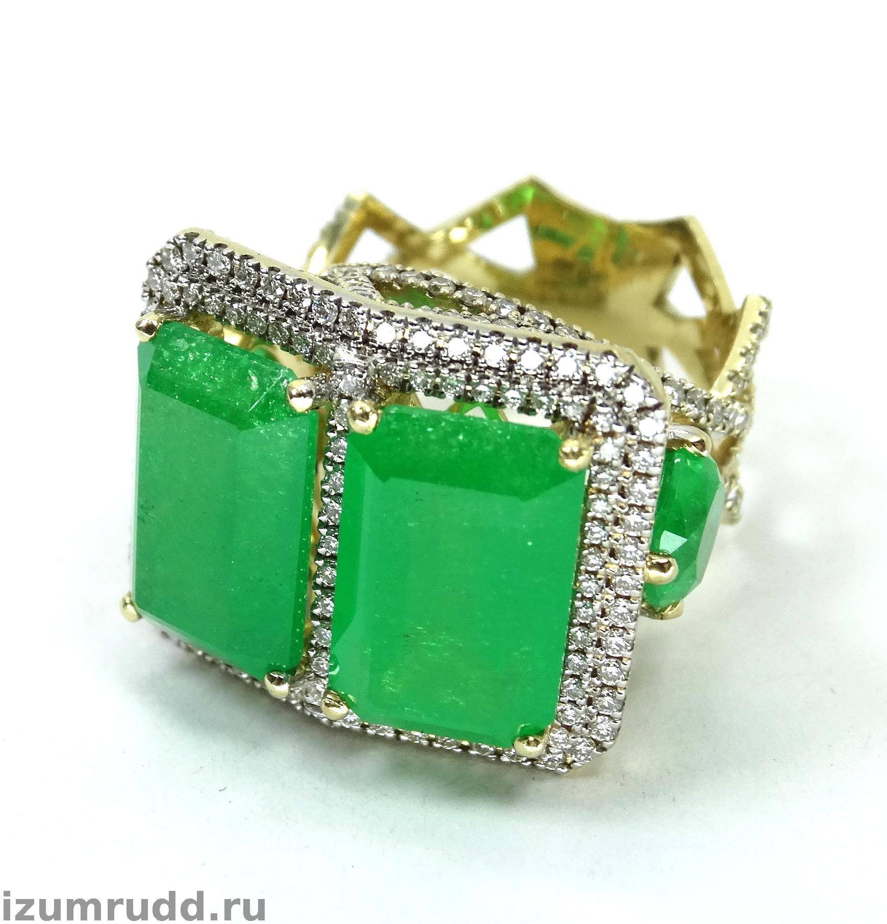 Золотое кольцо с бриллиантами и синтетическими изумрудами