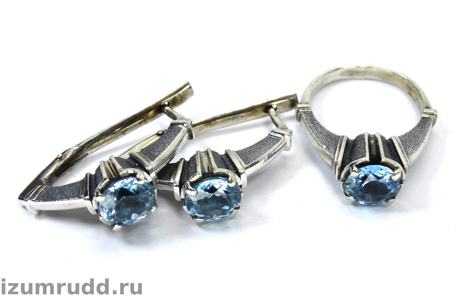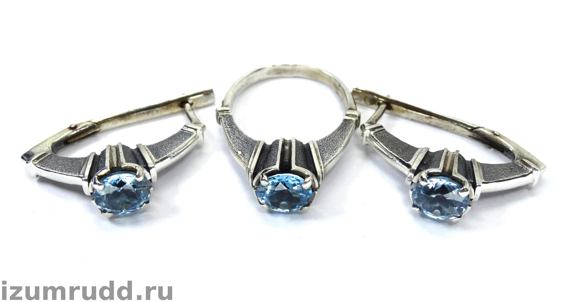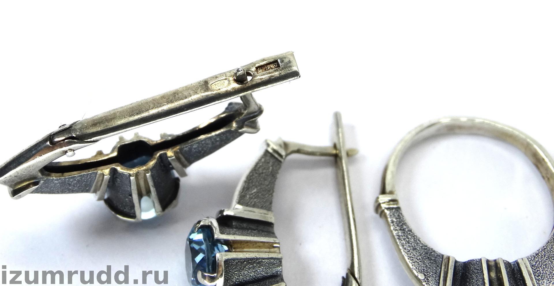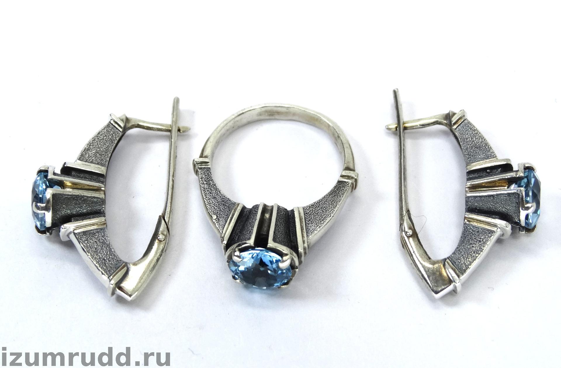 Крупные серебряные серьги и кольцо с топазами