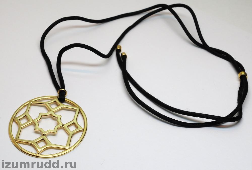 кулон продается в комплекте со шнуром, выполненный из текстильного материала, с золотыми фиксаторами и концевиками