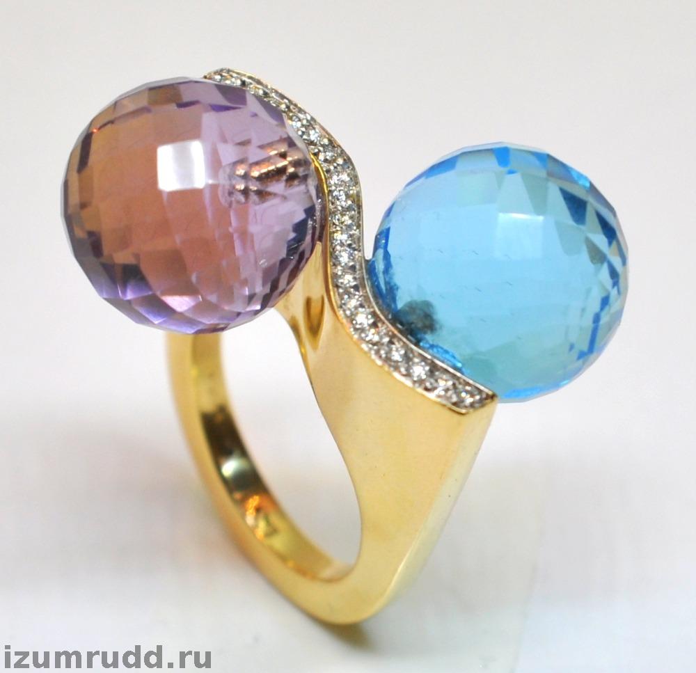Золотое кольцо Pianegonda с топазом и аметистом, 750 пробы