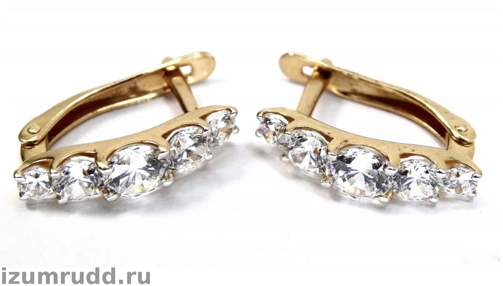 Золотые серьги с кристаллами Swarowski