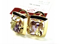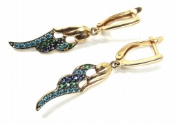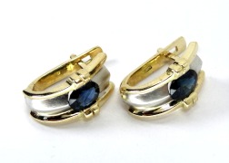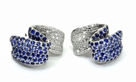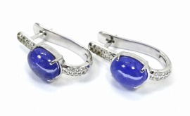 Золотые серьги пусеты с бриллиантами и сапфирами