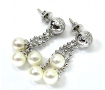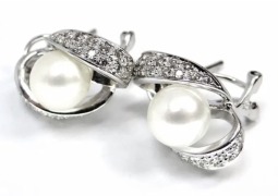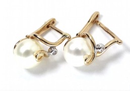 Золотые серьги пусеты с жемчугом и бриллиантами