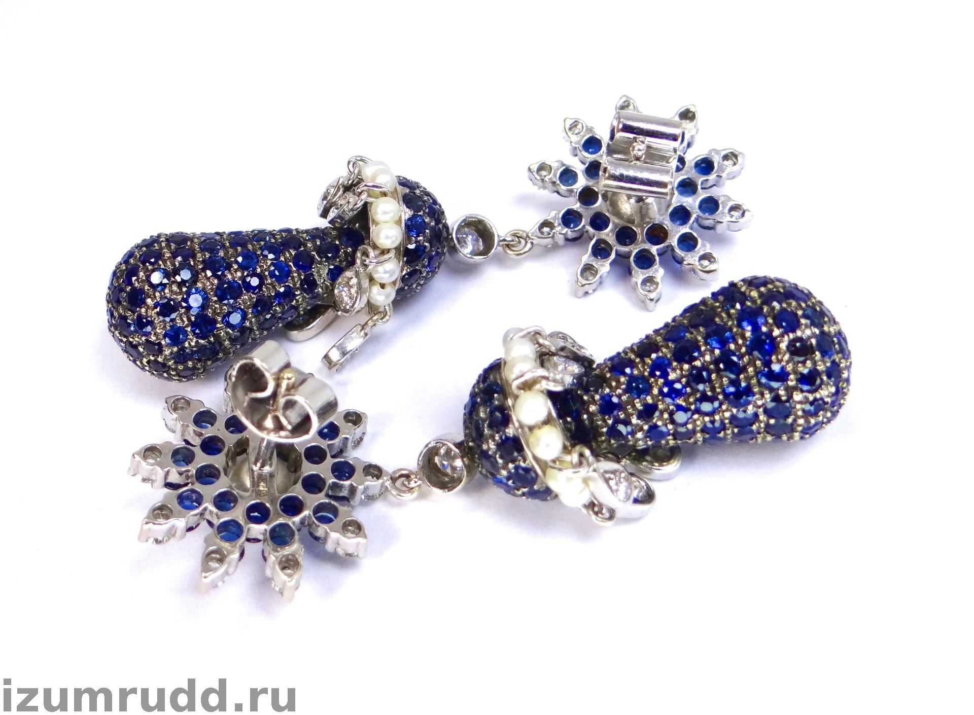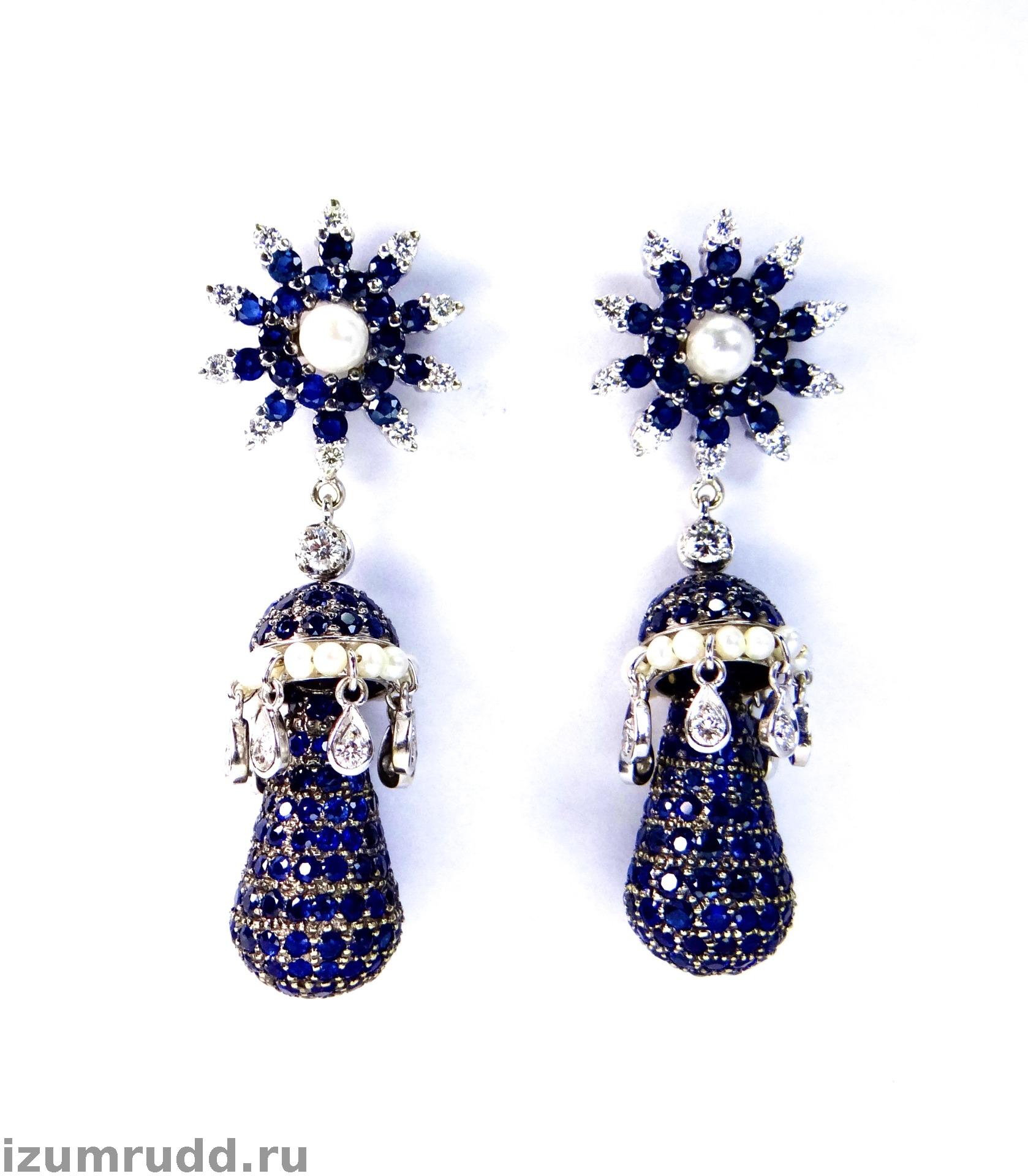белое золото 750 пробы, сапфиры, бриллианты, жемчуг