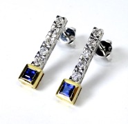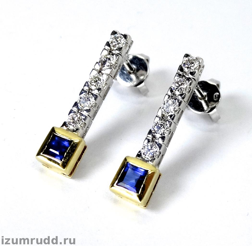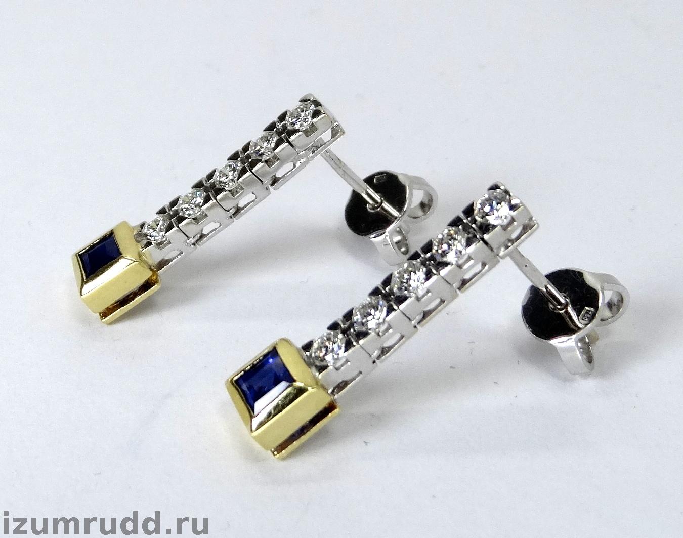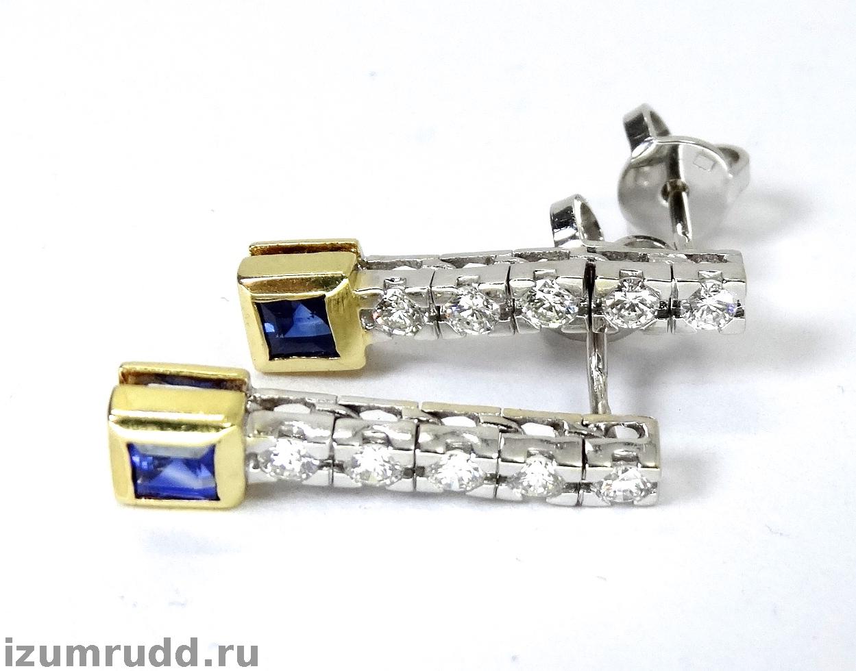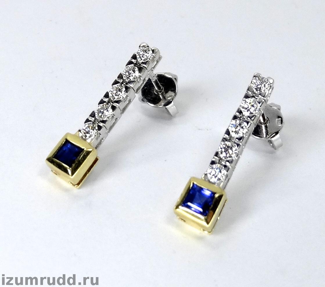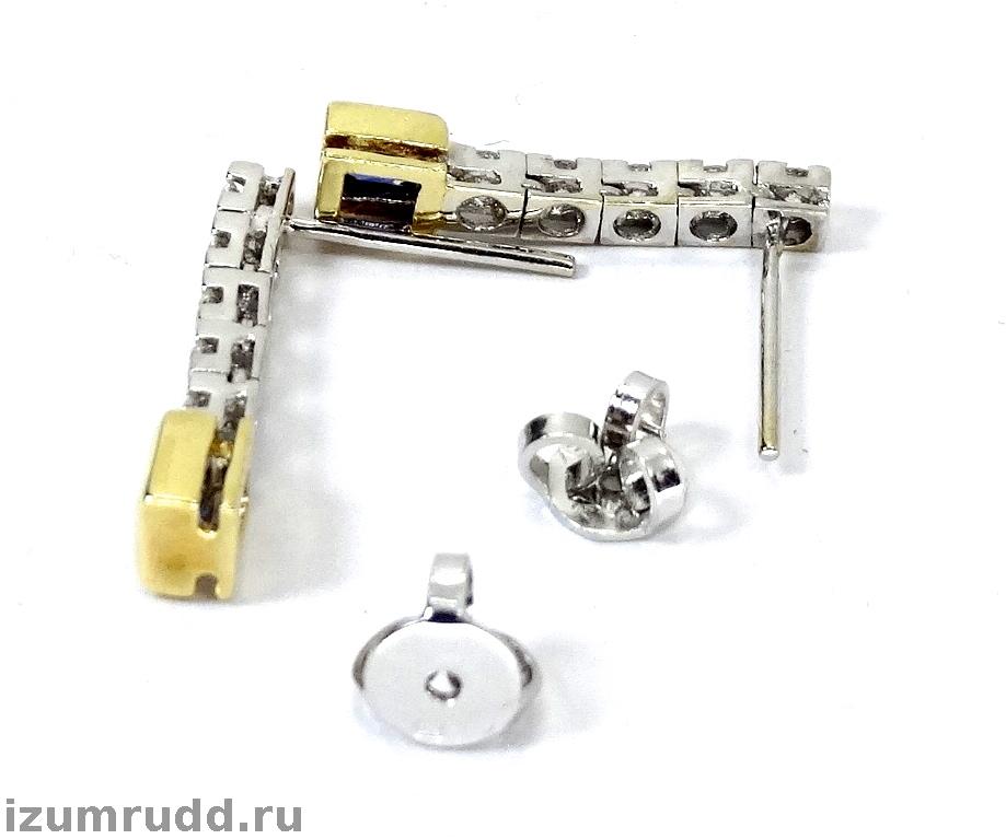 Золотые серьги пусеты с бриллиантами и сапфирами