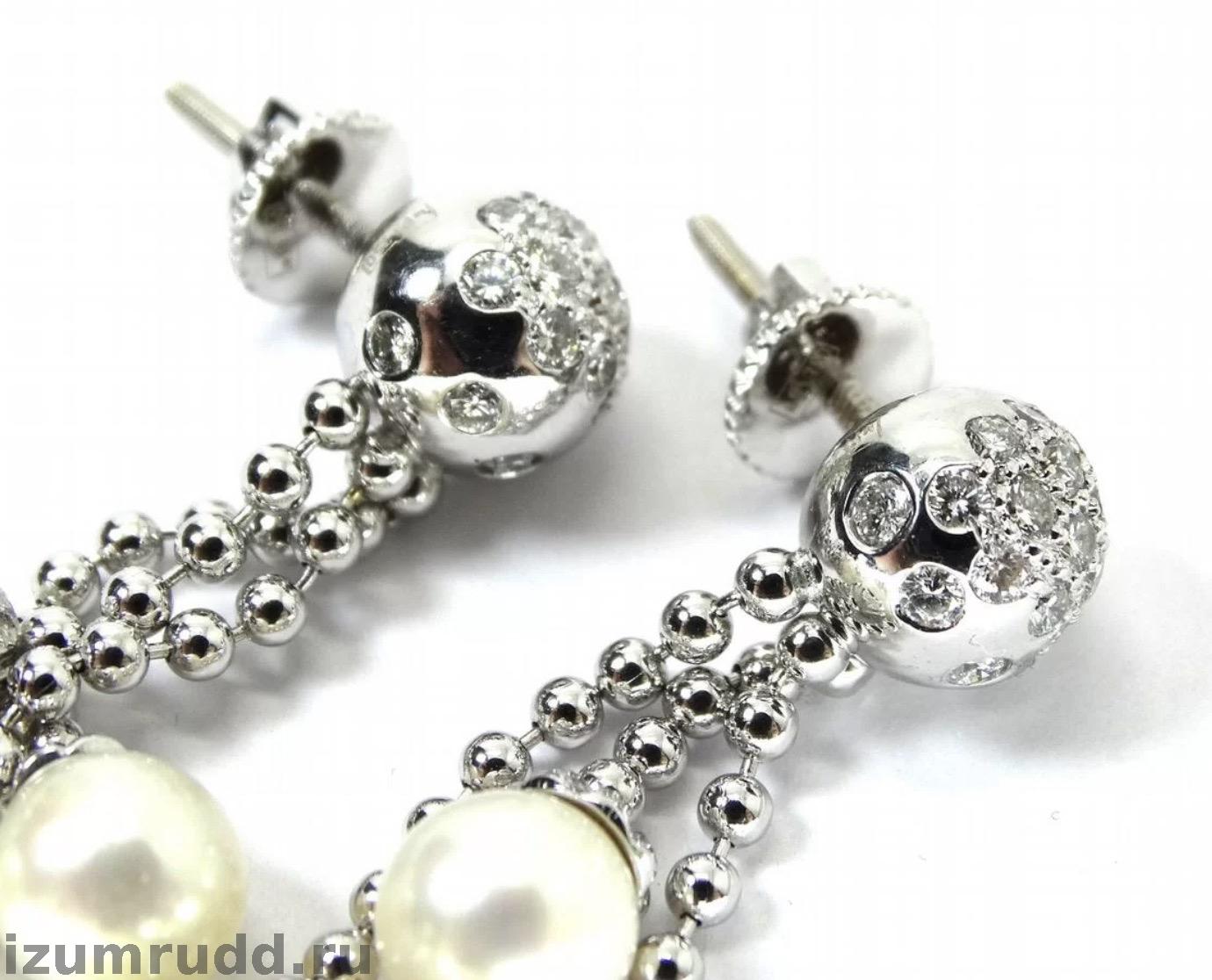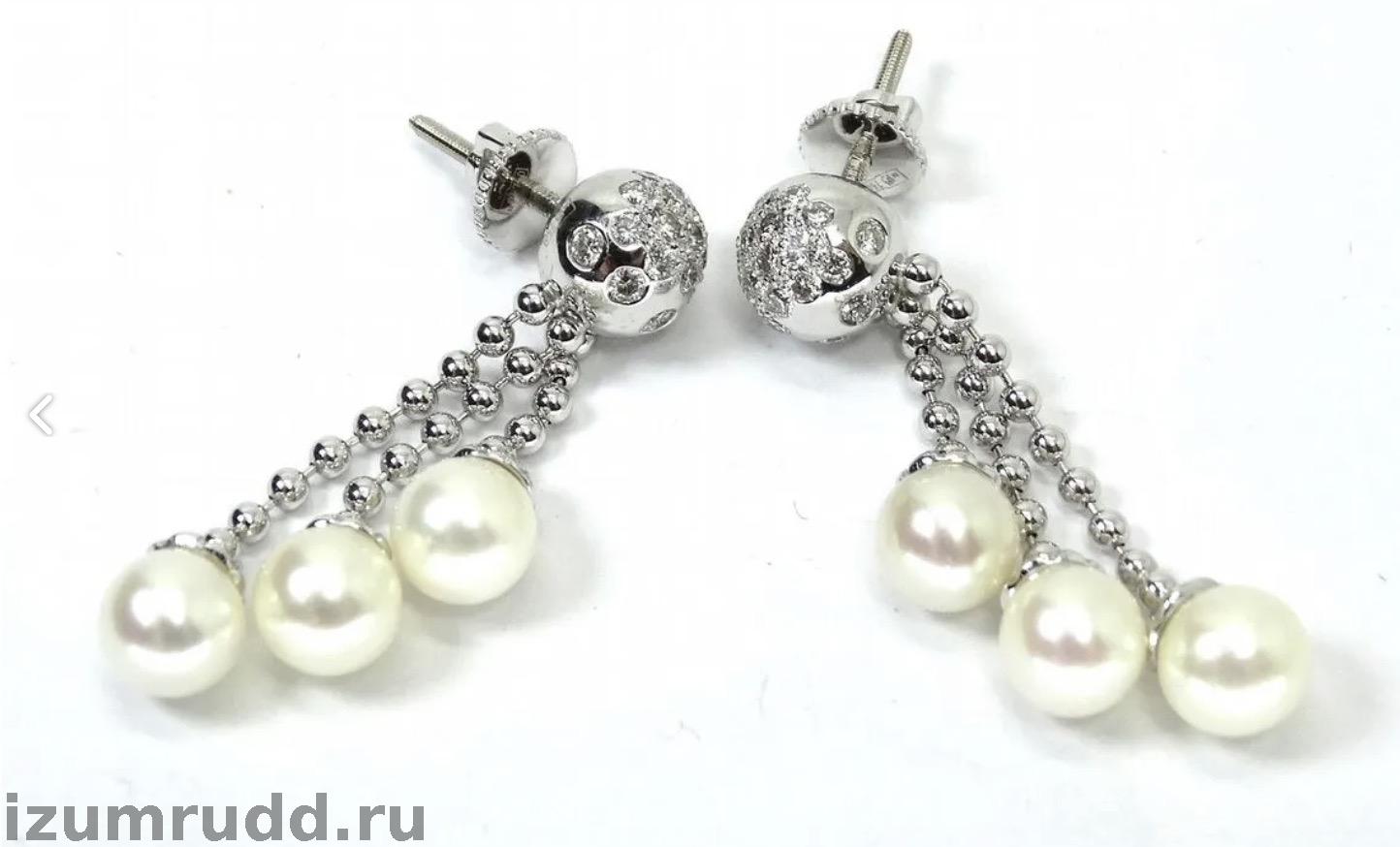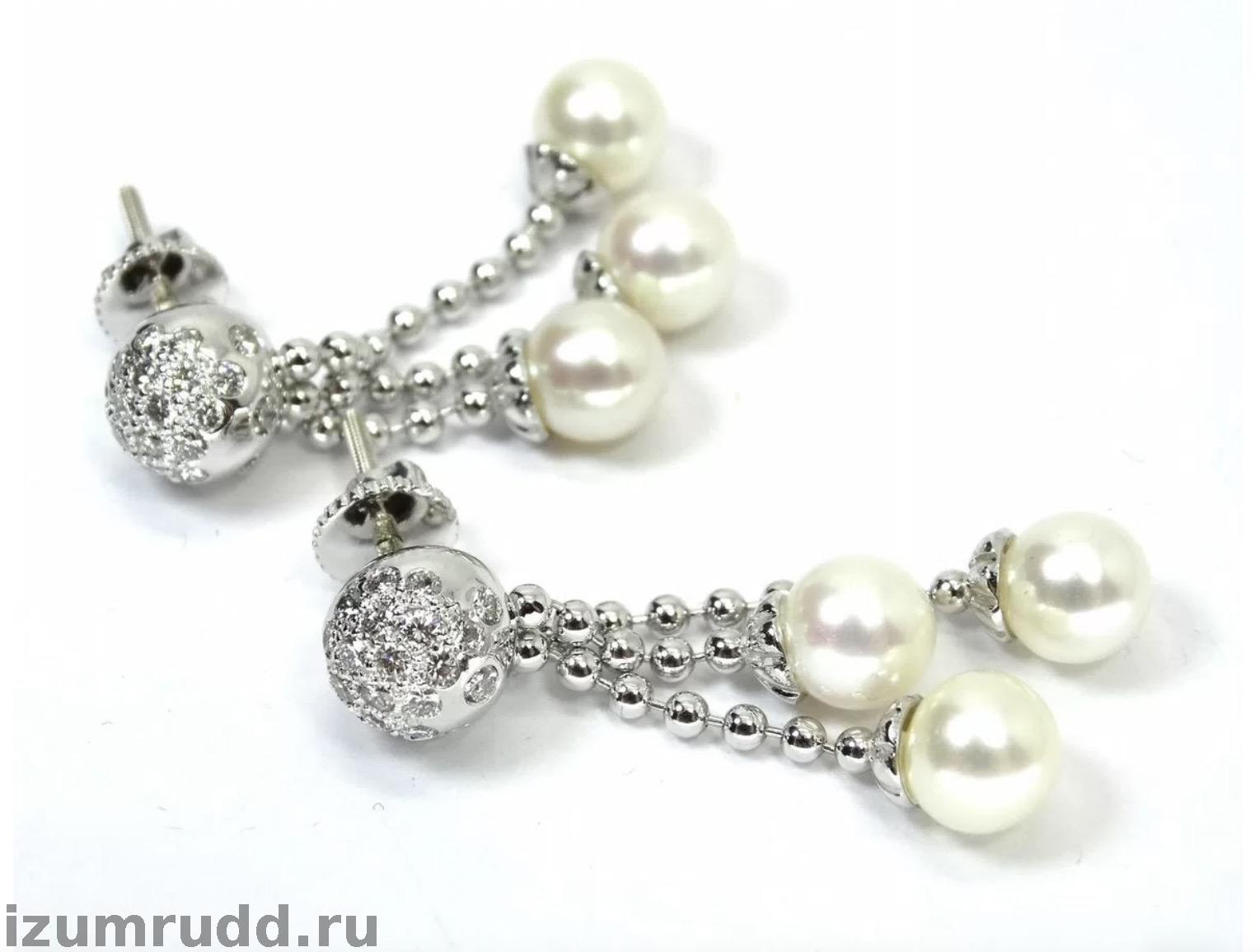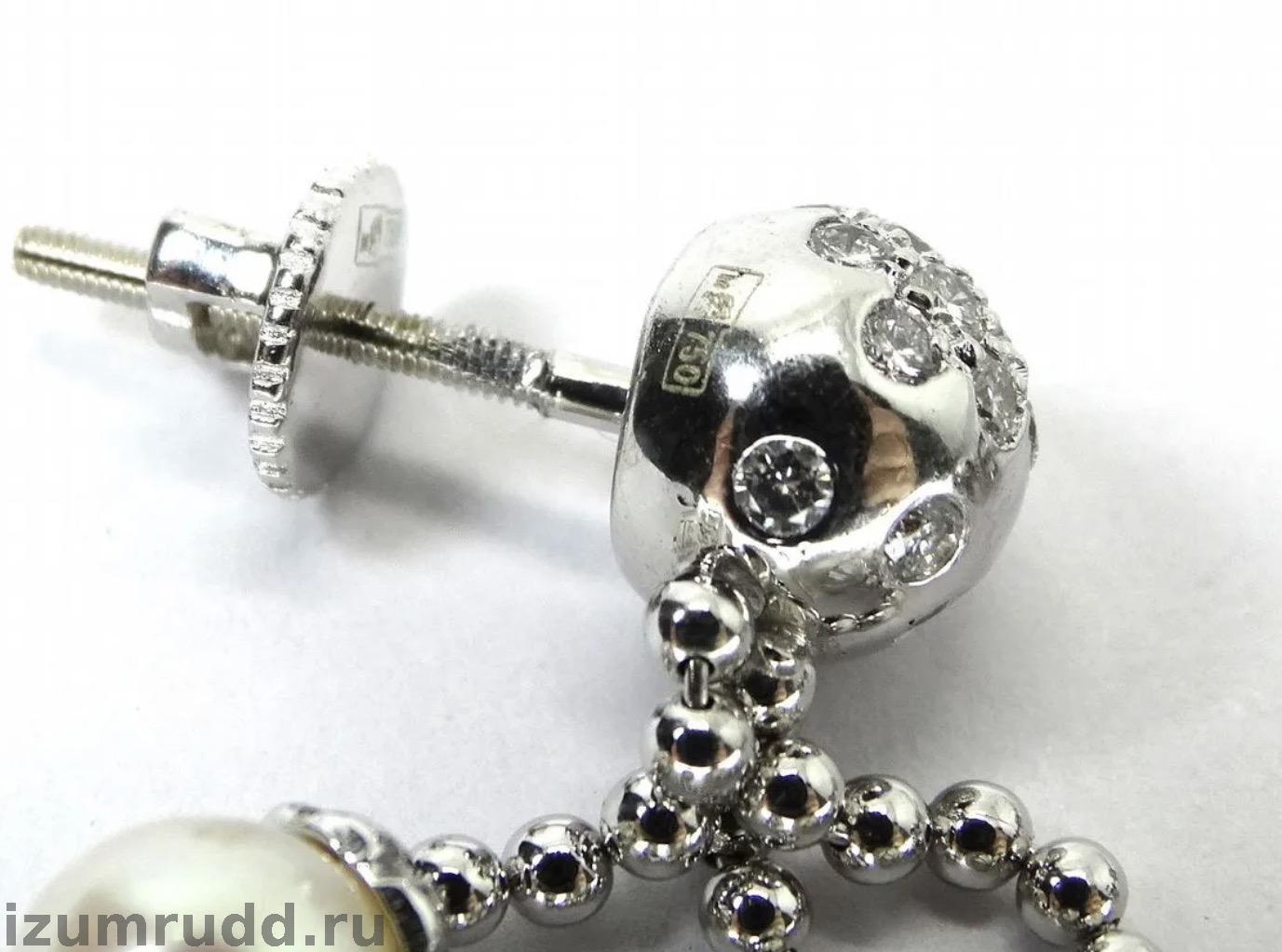 Золотые серьги пусеты с жемчугом и бриллиантами