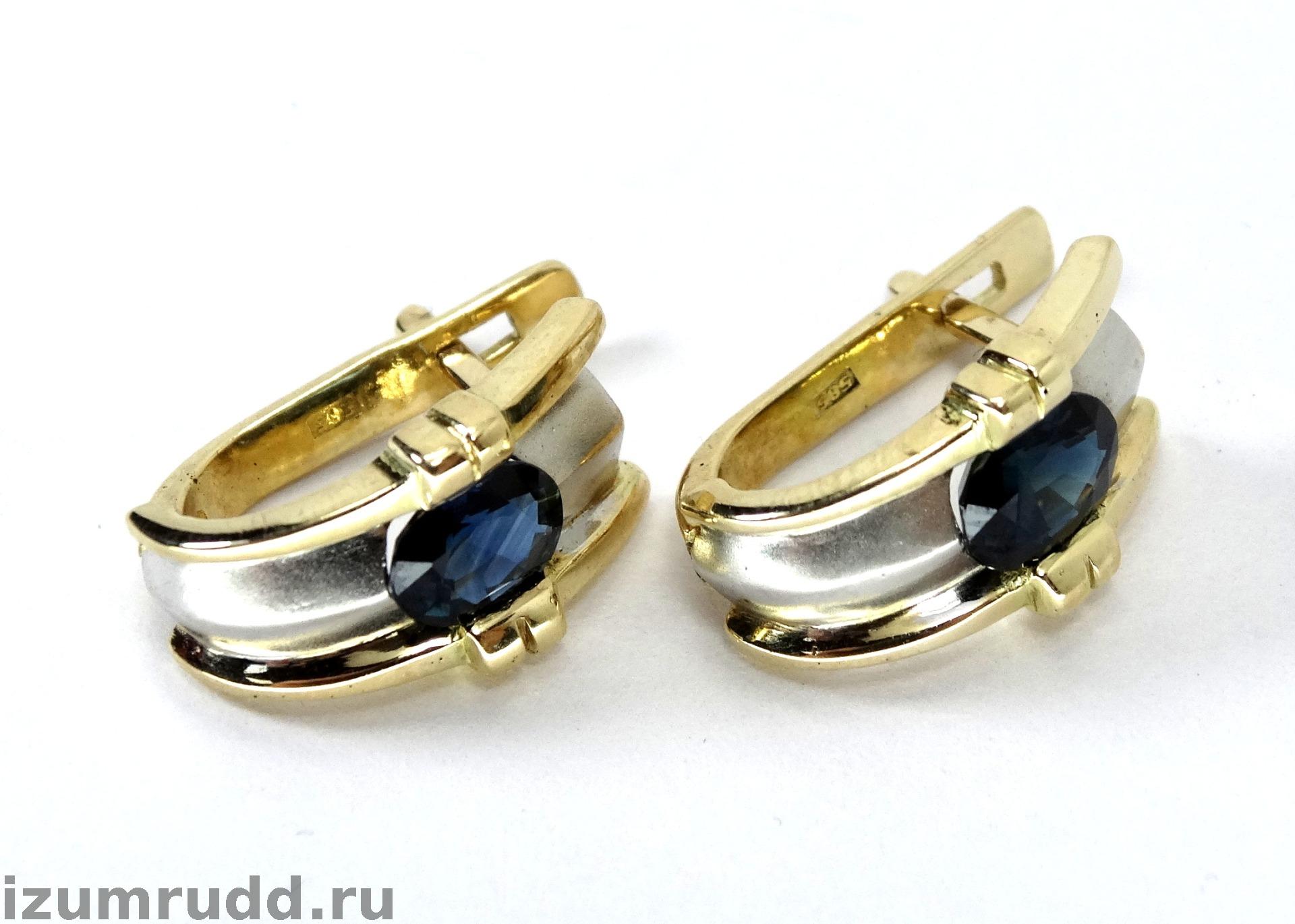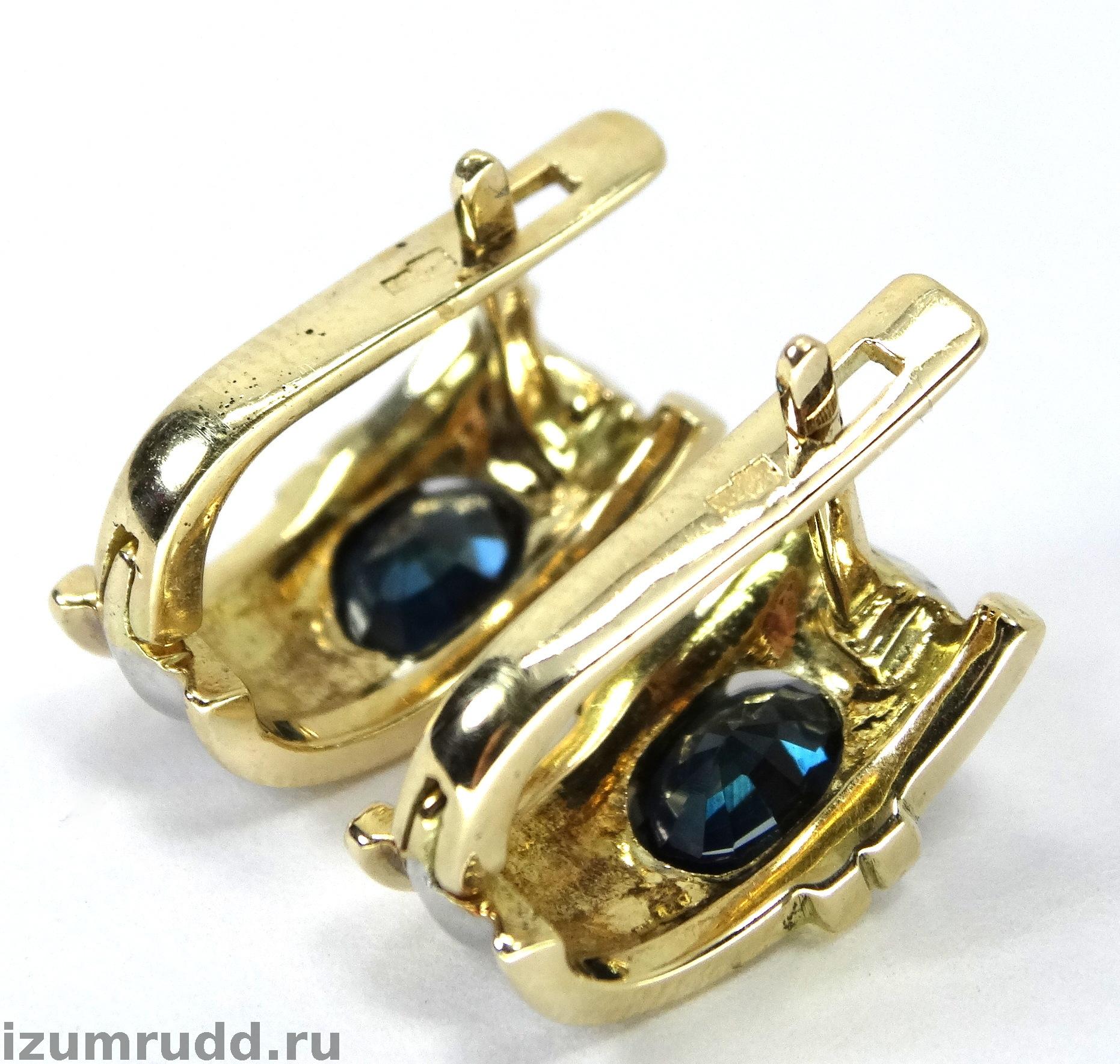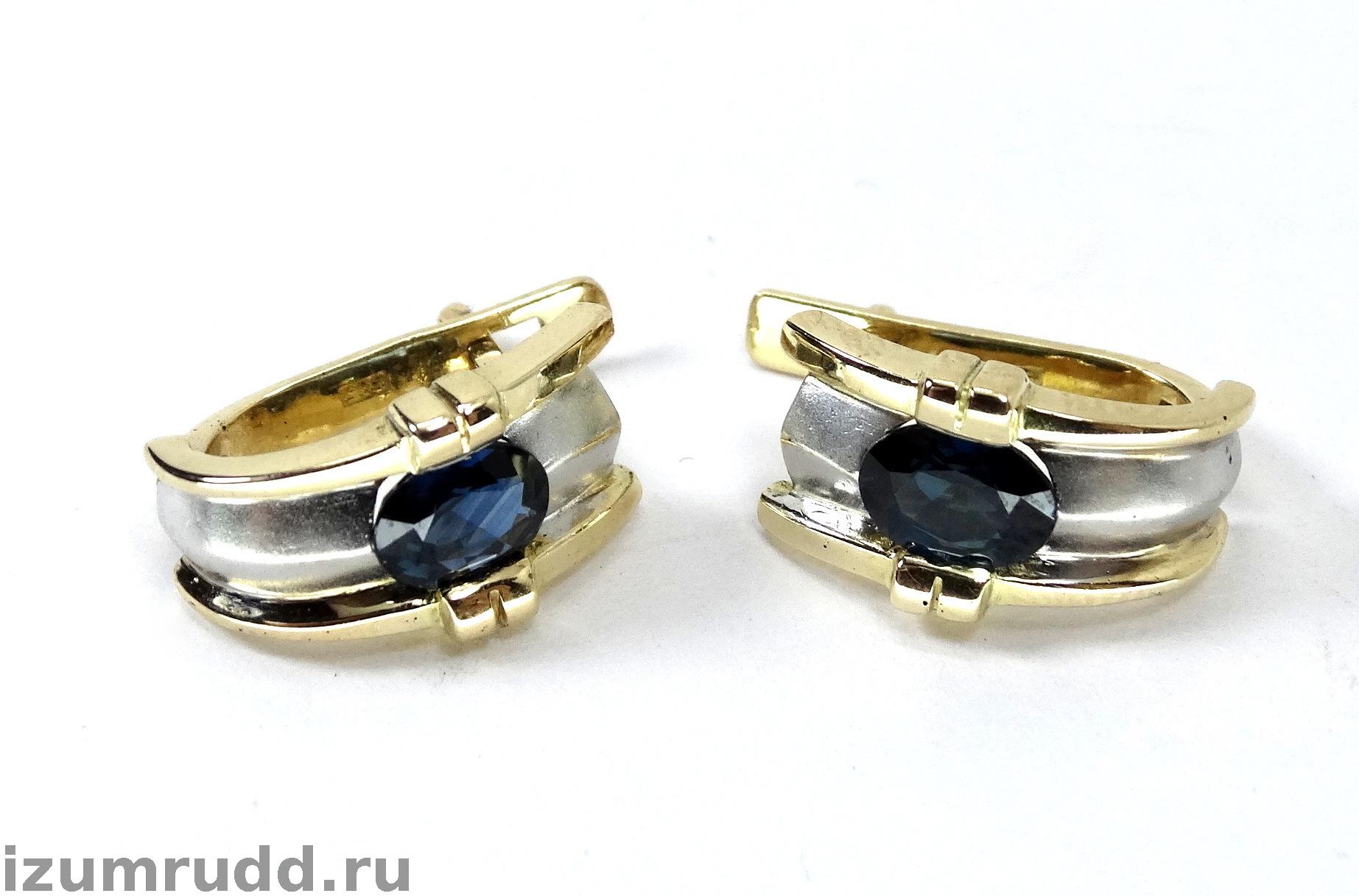 Золотые серьги с сапфирами 1.6 карата