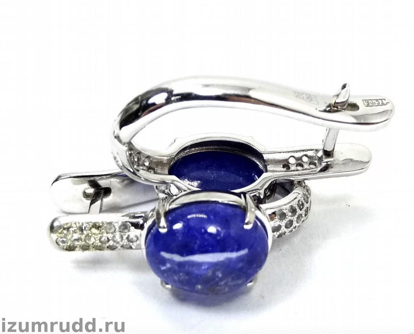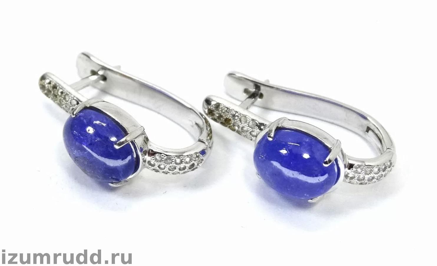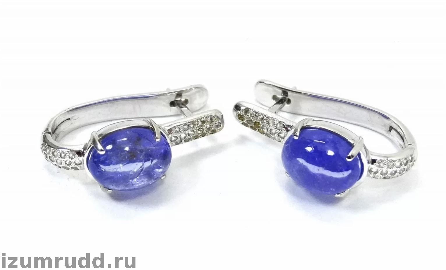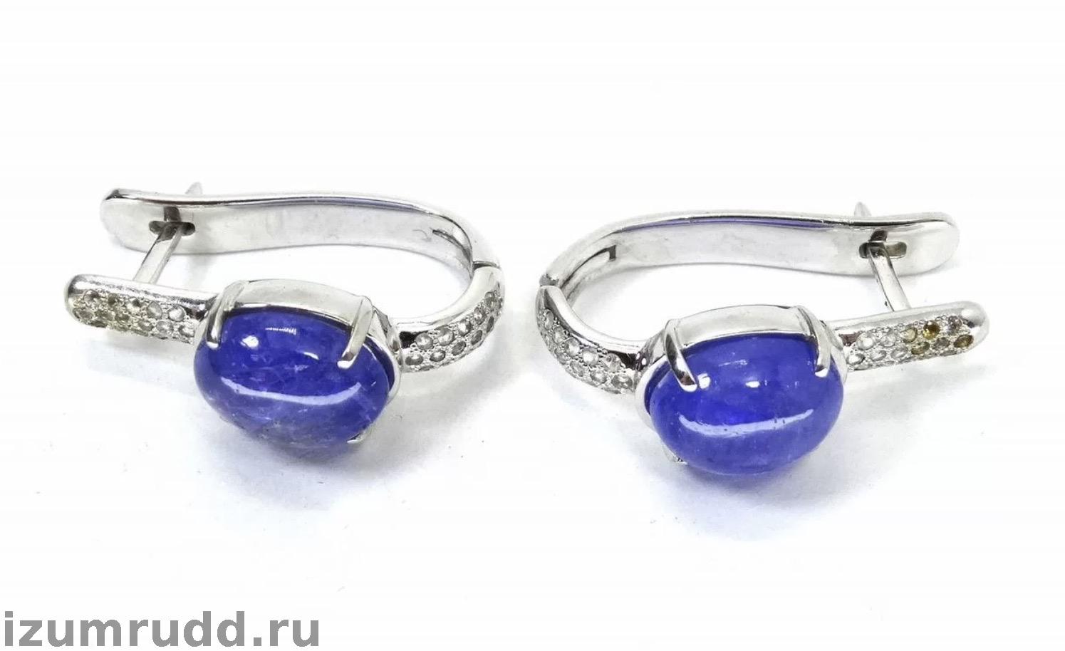 Золотые серьги с танзанитами и кварцами